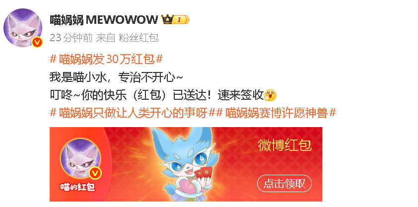 喵娲娲红包额度谢谢喵小水 18888.88×3已解锁,但的喵喵军团才刚亮相!数数手指头,还有N只没登场,每只都带着超吉利现金红包,不来主页蹲一波,你永远不知道下一个是谁!🧧🤫