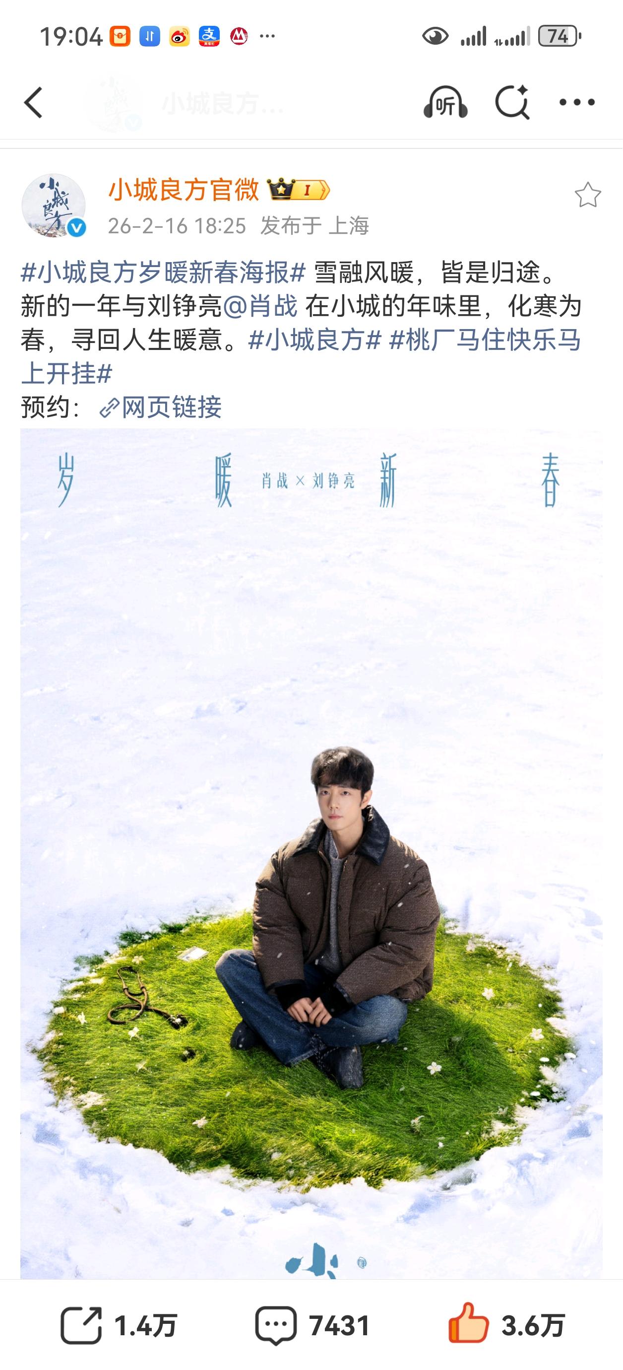 哇,小城良方发了新年新海报,刘铮亮好萌啊[爱慕][爱慕][爱慕]
