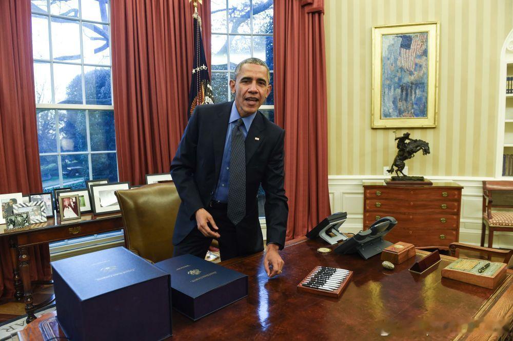 2015年美国总统奥巴马在白宫椭圆形办公室历史影像