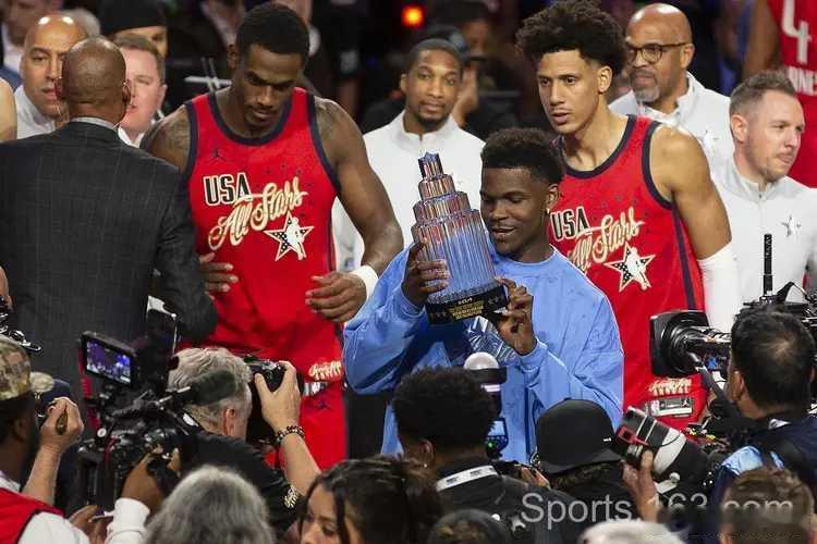 02月16日NBA全明星周末落幕,在压轴大戏全明星赛里,星辰队夺得冠军。在与条纹队的决赛里,星辰队多点开花,马克西、爱德华兹和霍姆格伦均得到至少8分,他们率队早早确立优势,星辰队最终以47-21战胜条纹队夺冠。爱德华兹3场比赛合计得到32分,获得MVP。爱德华兹nba全明星