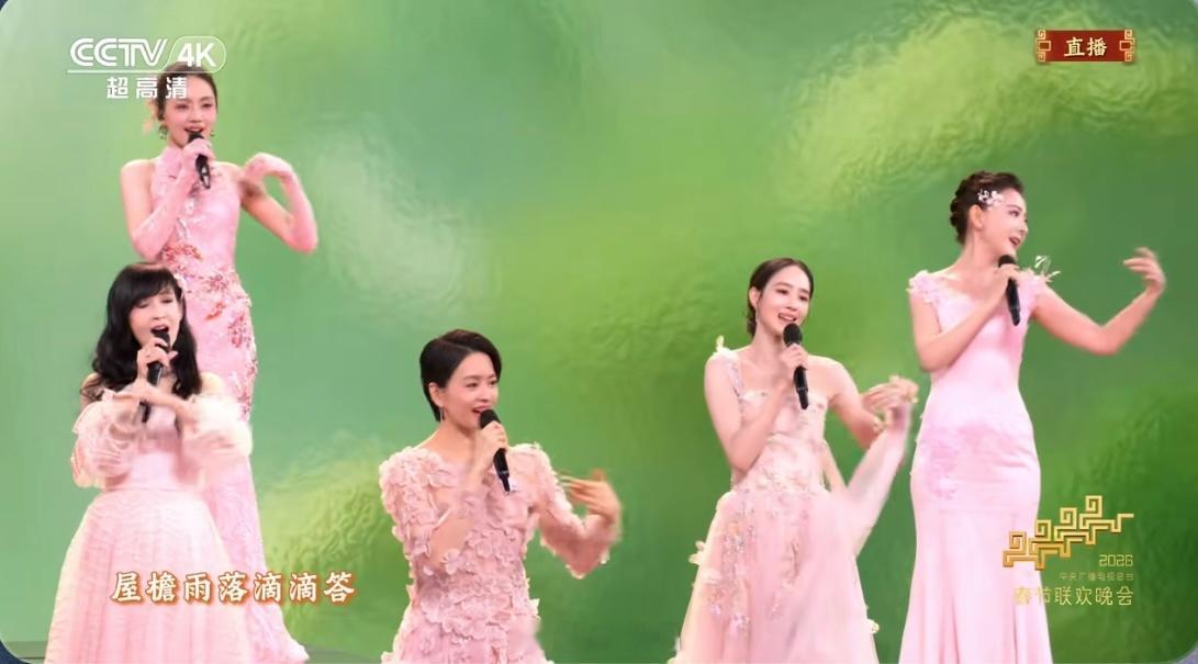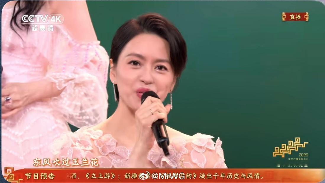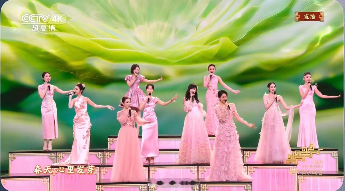 春晚 春山青翠,鲜衣流粉,一片盎然生机,好好看——大湾区姐姐真是不老传奇,周慧敏和梁咏琪两位最资深的,状态太好了吧!💖 周慧敏纱裙卷发,就像芭比一样!🍃🌸周慧敏