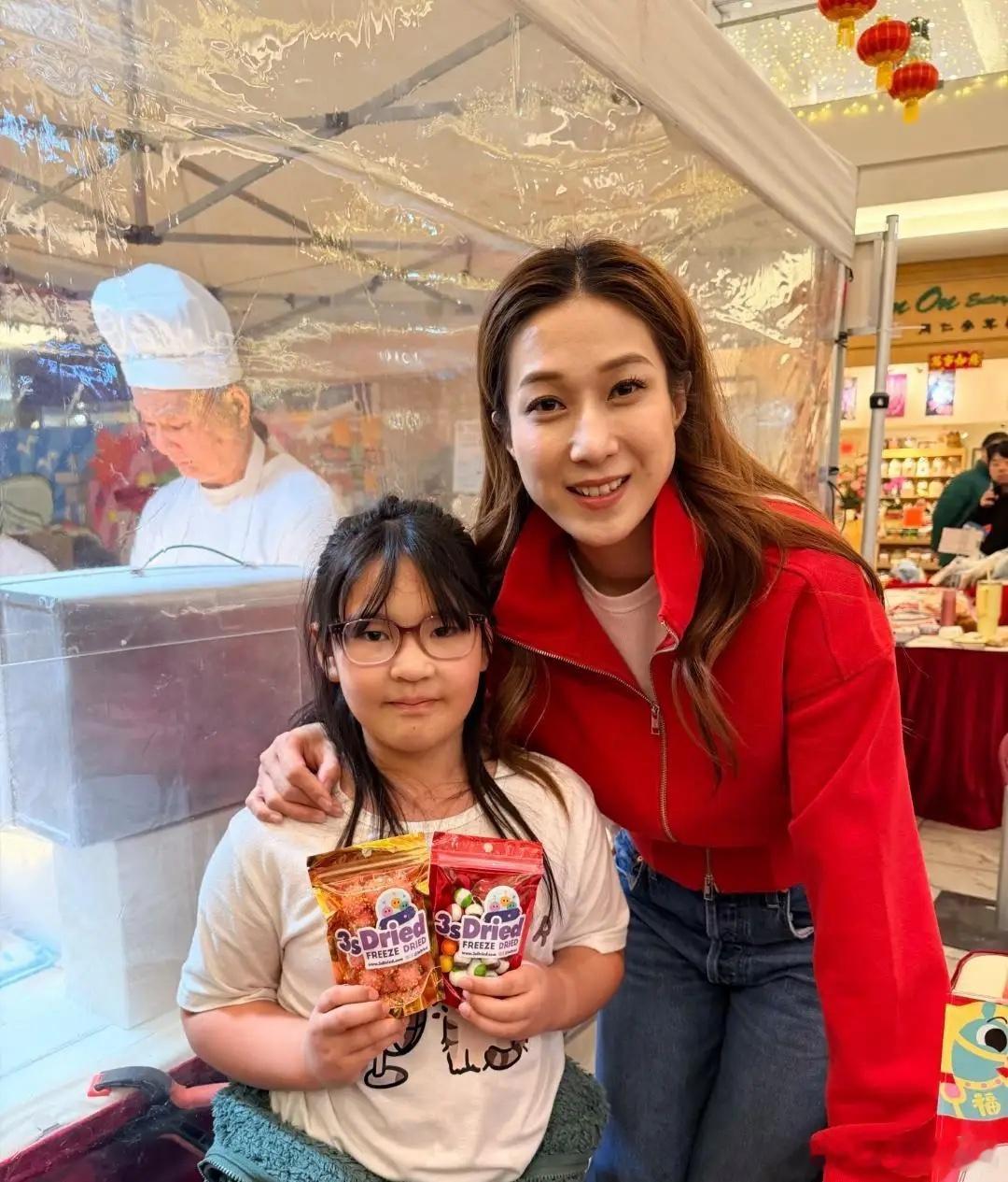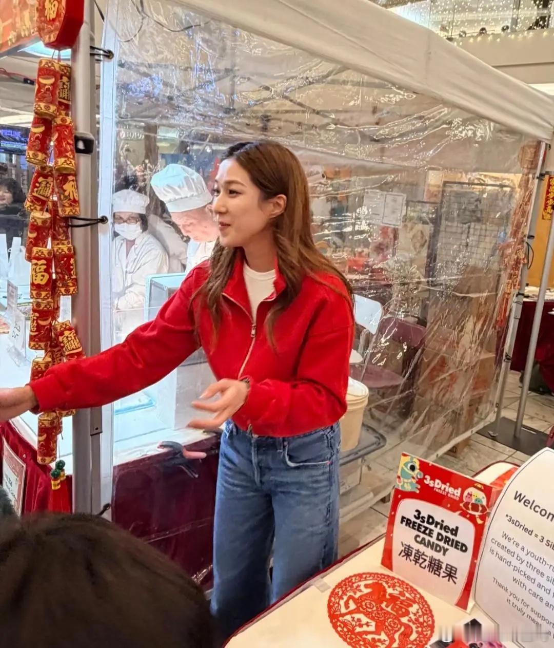 42岁钟嘉欣现身温哥华一家商场卖糖果年货,儿子和女儿陪着她一起卖年货,她态度热情好客,毫无明星架子,她好接地气又低调,她穿着红色外套,看起来很喜庆,染了一头棕色的长发,皮肤紧致,身材高挑,气质优雅,外表好年轻,她保养得真年轻啊!