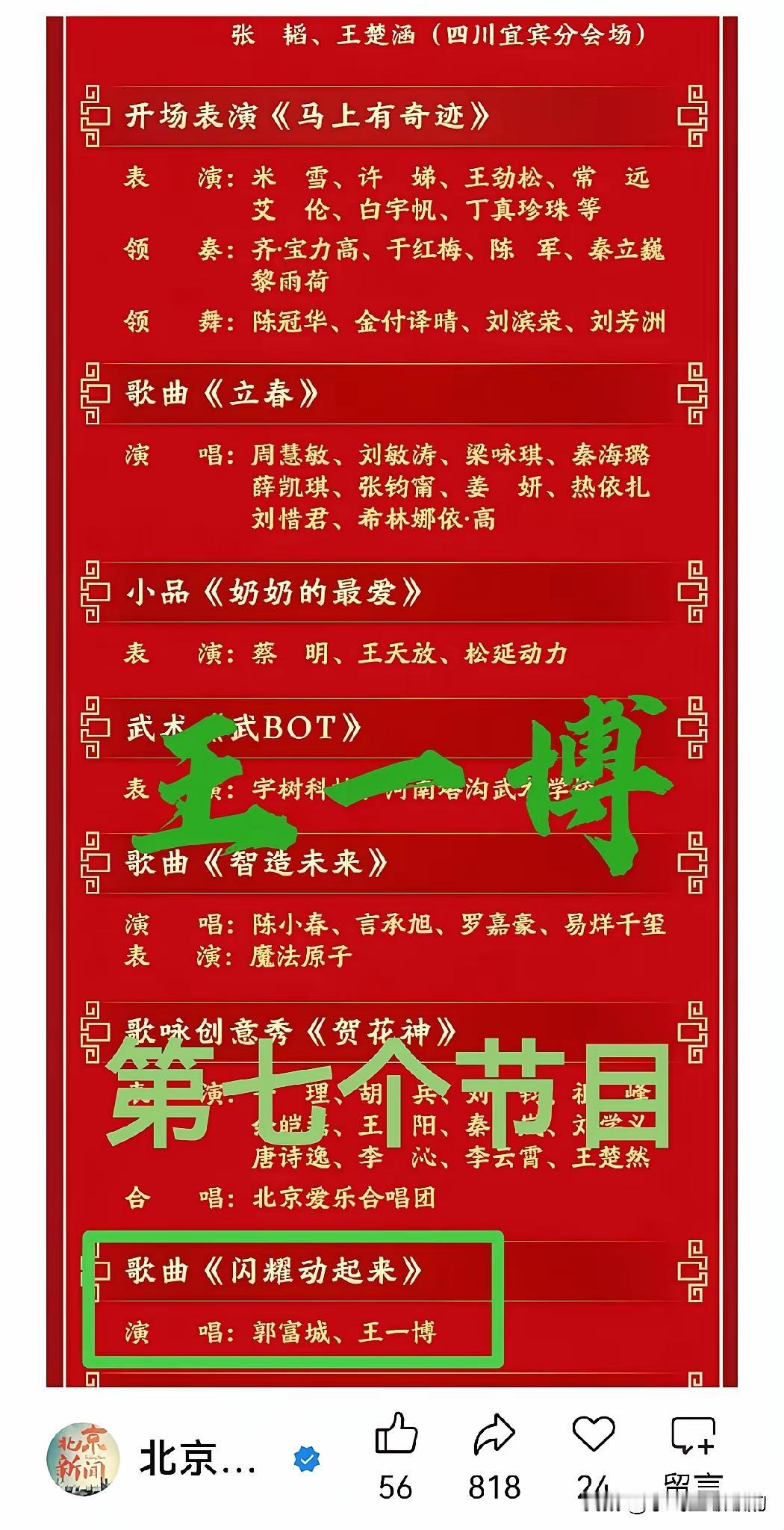 春晚节目单!王一博、郭富城第七个节目![作揖][ok][烟花]