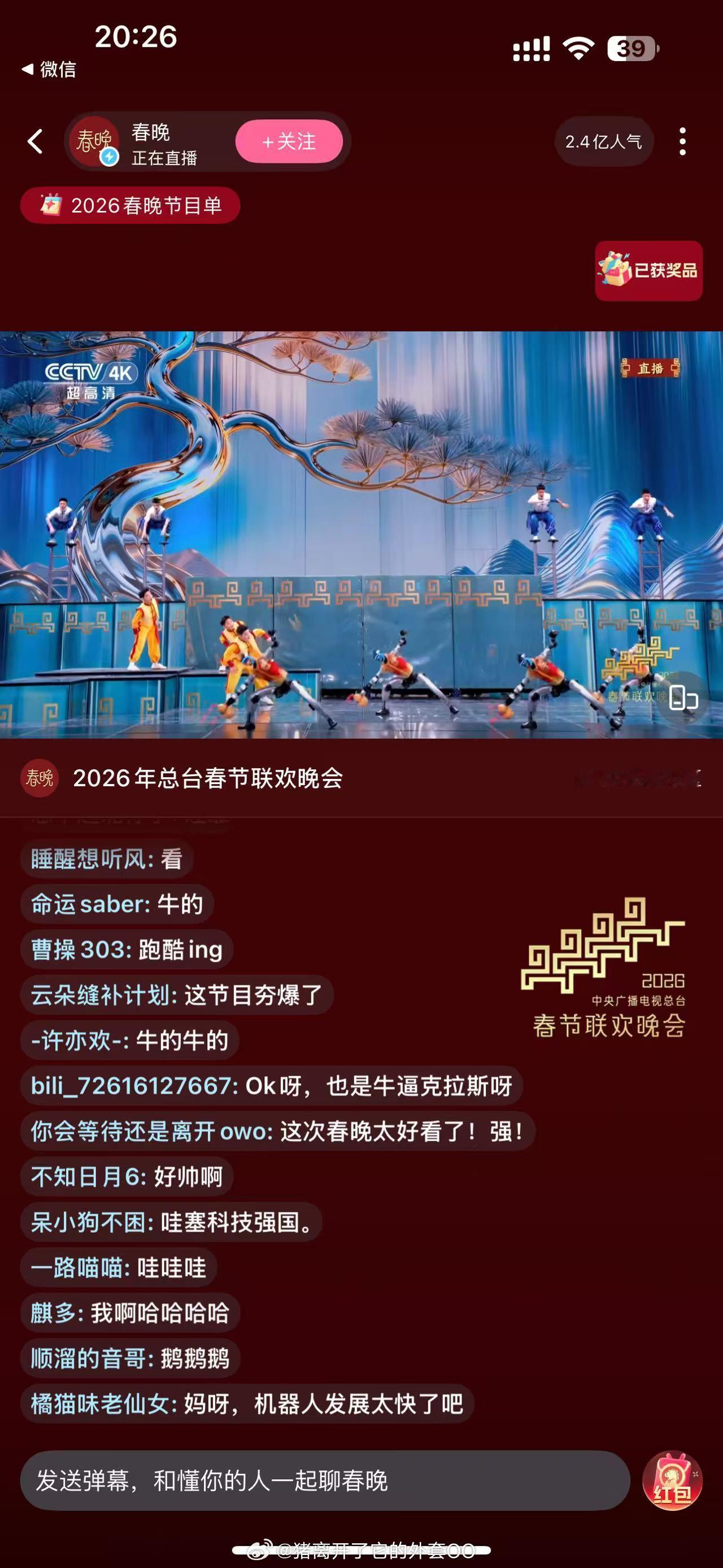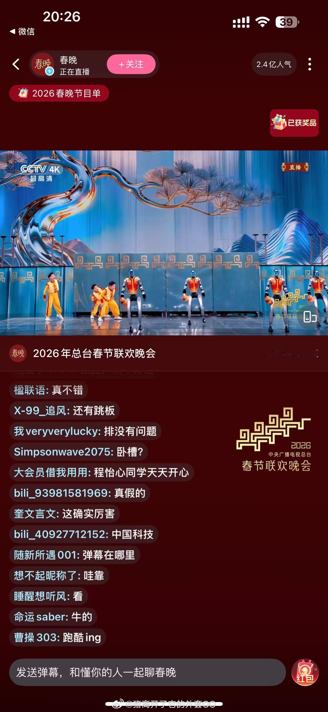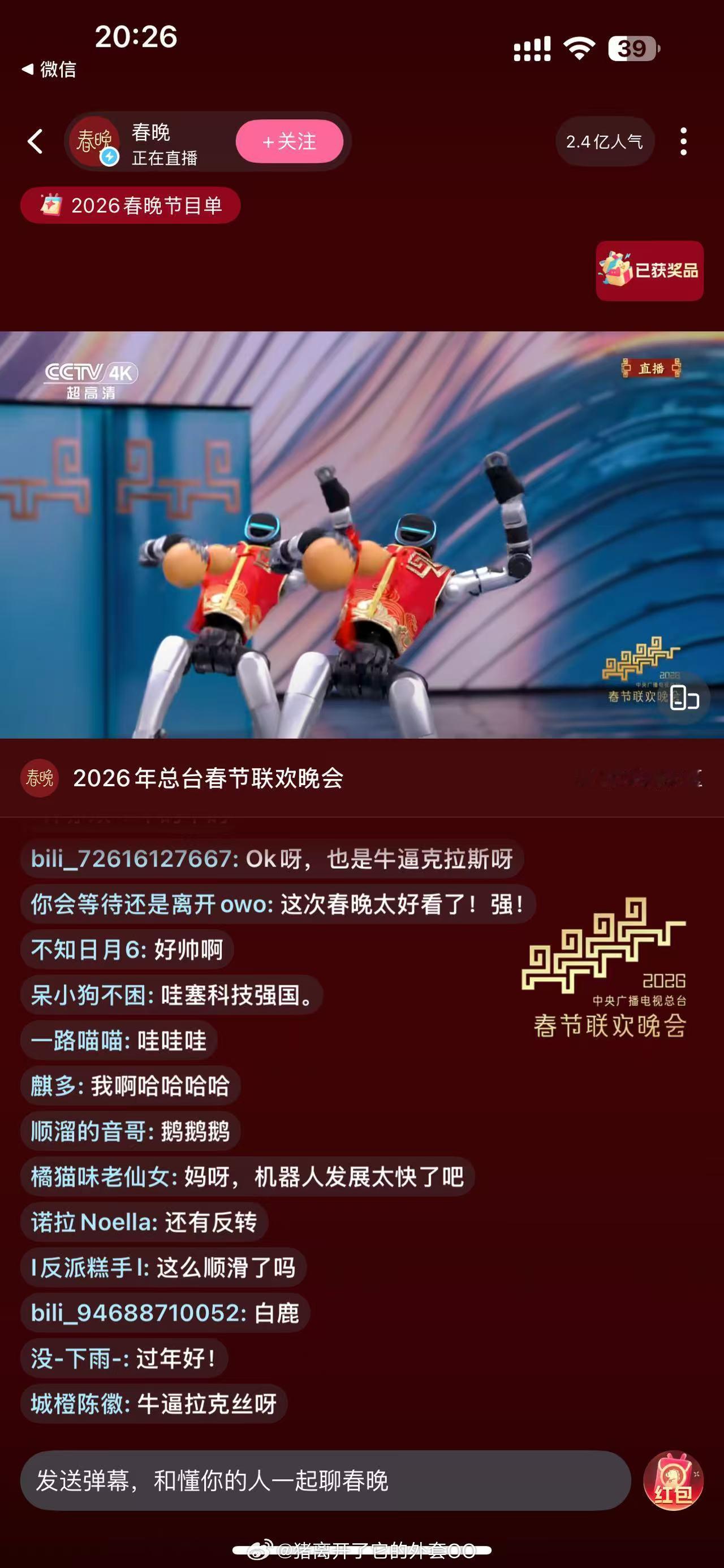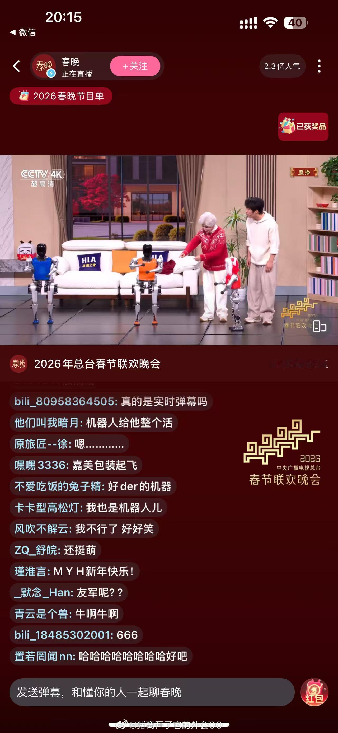 春晚弹幕 今年B站二搭春晚,而且在B站看直播还能发春晚弹幕,太明智了,谁能比网友们会造梗啊,大家说话没轻没重的,这样才有趣嘛,这是咱参与感最强的一次!