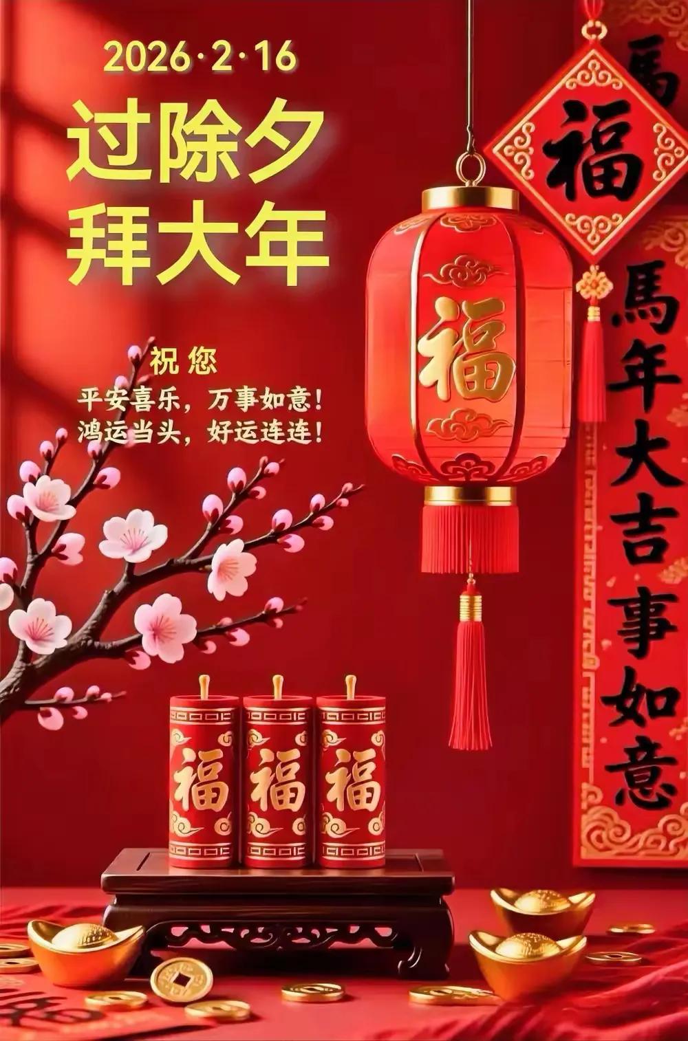 友友们,您们好!今天是2026年2月16日,除夕,马年到了。祝福大家春节快乐,一切顺好![握手][作揖]