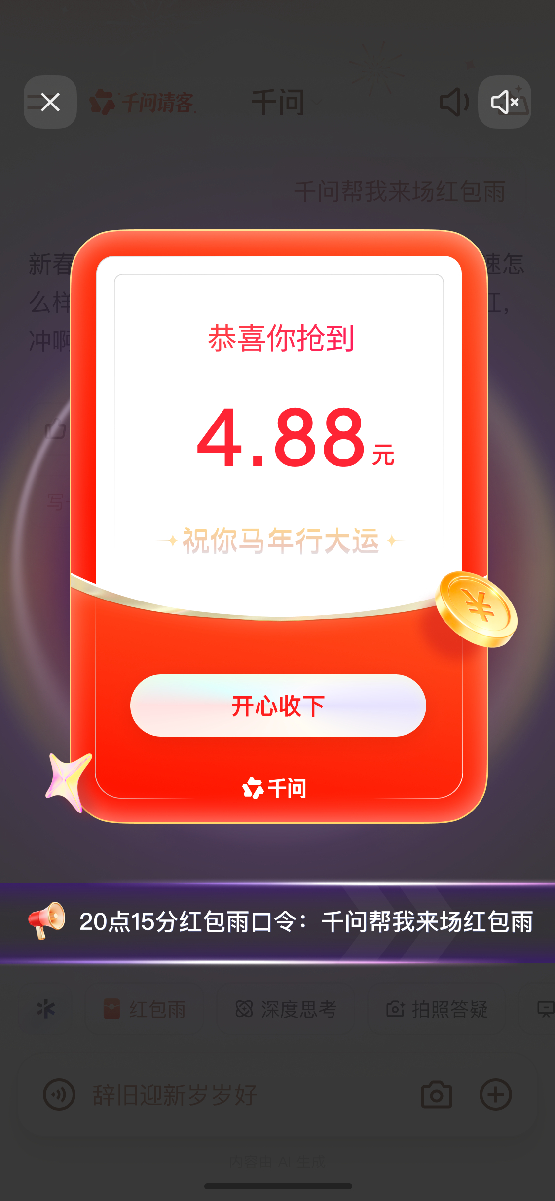 千问上抢的红包比广东人包的多集千问超级免单卡最后一天平时收利是还要客套推拉,上千问直接抢了好几个红包!除夕千问红包雨谁还没参加,我刚又抢到咯,这才是红包该有的样子~