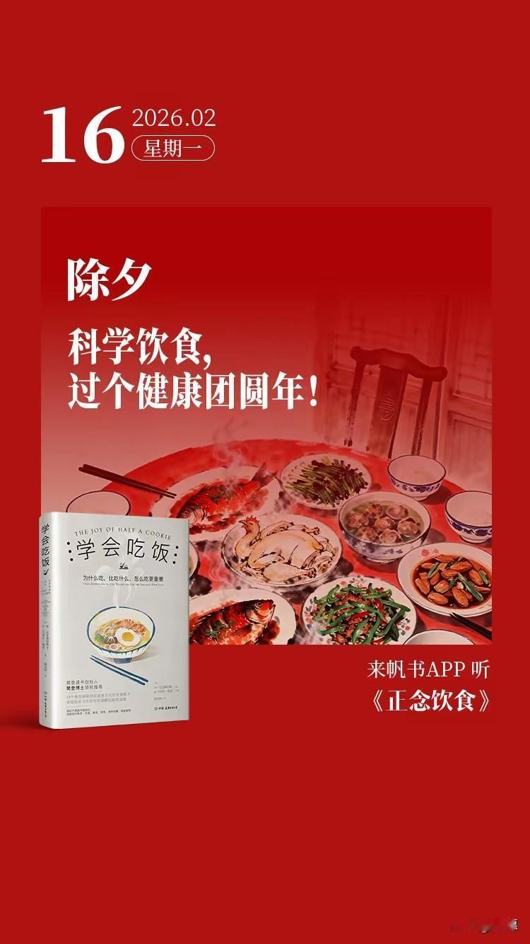 除夕夜想吃得开心又健康?这份科学饮食指南请收好!——想了解的话,不妨去帆书APP听听《正念饮食》帆书APP每日打卡 樊登读书 一到除夕,全家团圆的餐桌上总是摆满了各种美味佳肴,红烧肉、糖醋鱼、饺子……每一道都是过年的“标配”。可要是一不小心吃太多、吃太杂,很容易觉得腹胀、没胃口,甚至影响年后的状态。所以,哪怕是在这个讲究“吃好喝好”的日子,稍微留意怎么吃才科学,才能让健康和团圆一起“满分”。 帆书APP里的《正念饮食》这档节目,就有不少实用的小建议。它会教你怎么在享受美食的同时,控制食量、搭配营养,比如吃饭时细嚼慢咽、别边吃边刷手机,或者提前规划好每餐的食材,避免“看到啥都想夹一筷子”。这些方法听起来简单,但真能帮你把年夜饭安排得更合理,既不辜负美味,又能让身体舒服。 想知道具体怎么吃才健康又不辜负这一桌子菜?快去帆书APP搜《正念饮食》,说不定能给你的年夜饭加份“健康buff”哦! -search.byteimg.com/img/labis/3d31008e10d64671192355d74feb52ce~480x480.JPEG
