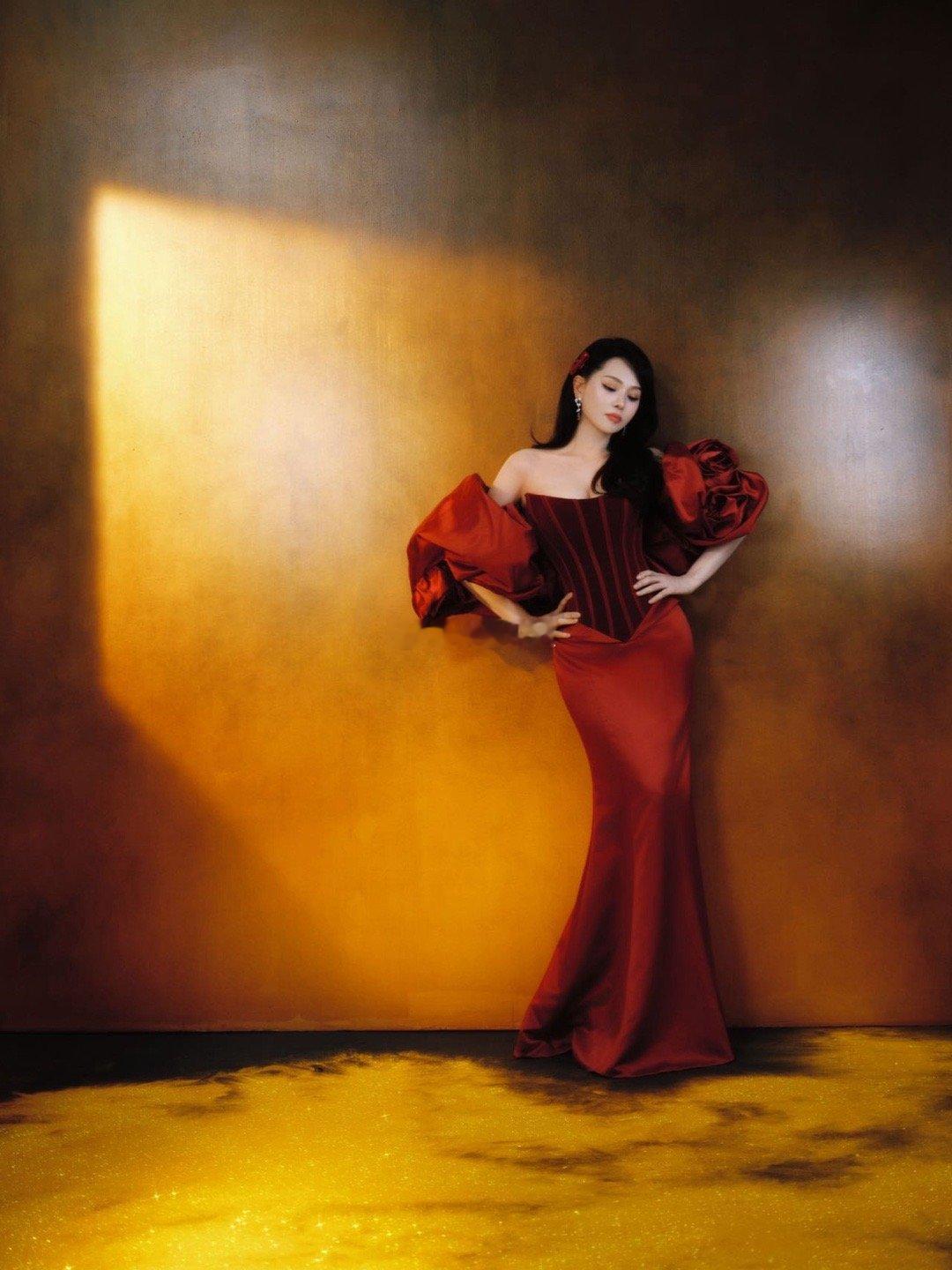 伊能静春晚一袭缎面红裙,复古波浪卷发,就像一朵摇曳生姿的红玫瑰,在时光中自由绽放,将人生演绎得炽热鲜活!