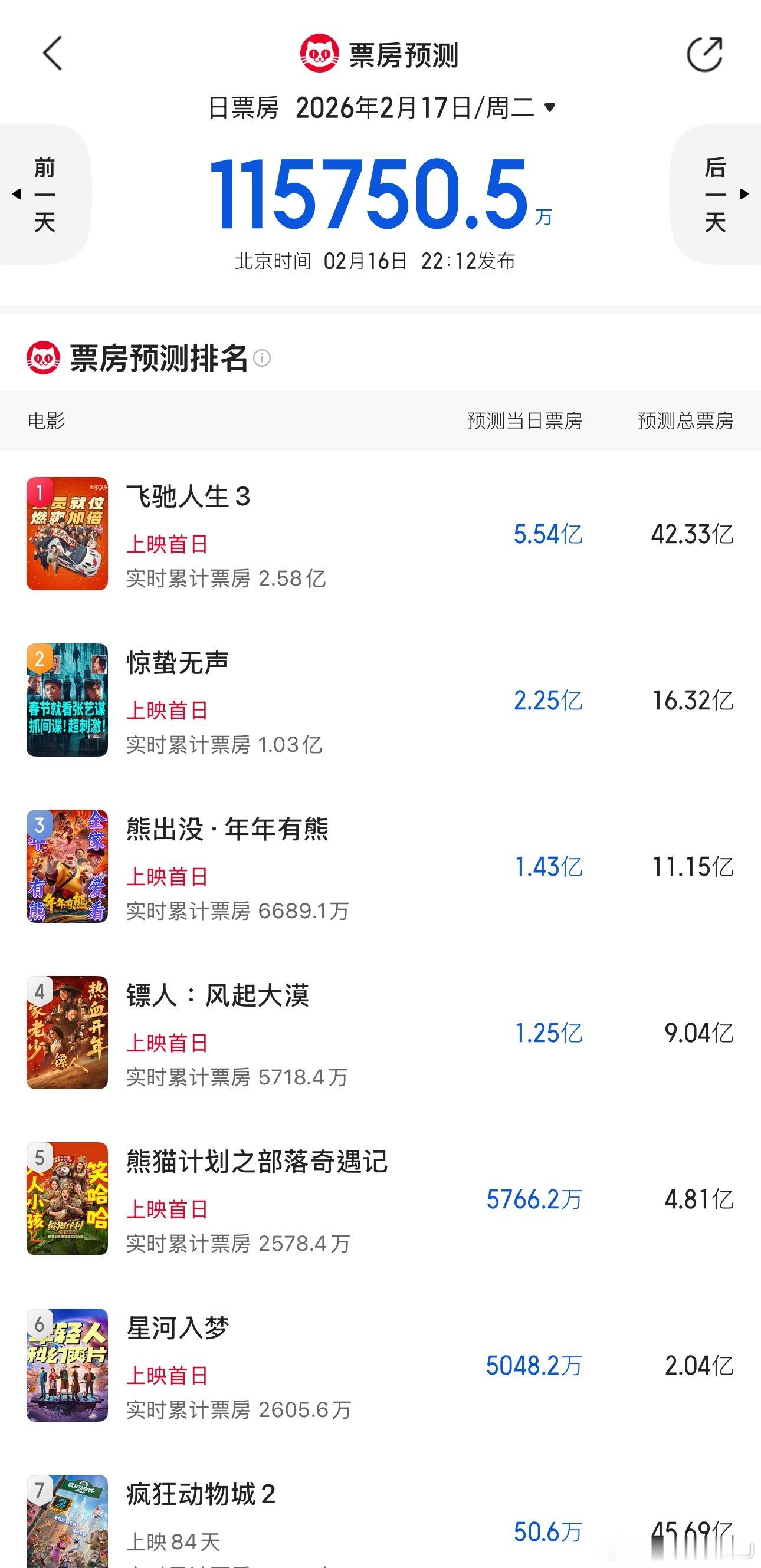 春晚中插中国电影,双平台的春节档票房预测也出来了,沈腾主演的飞驰人生3遥遥领先,预测总票房四十多亿,跟其他片子拉开了一倍多的差距。