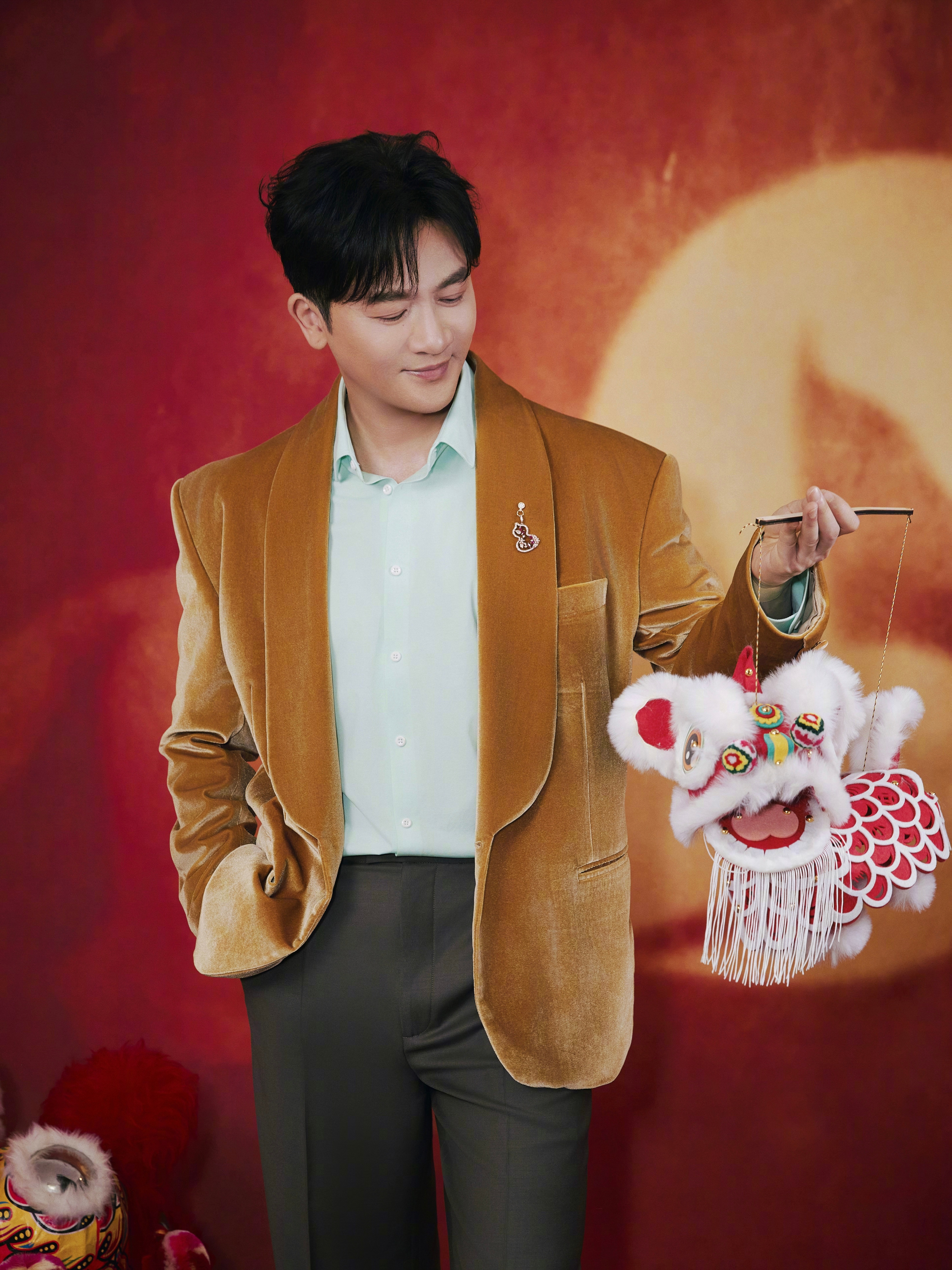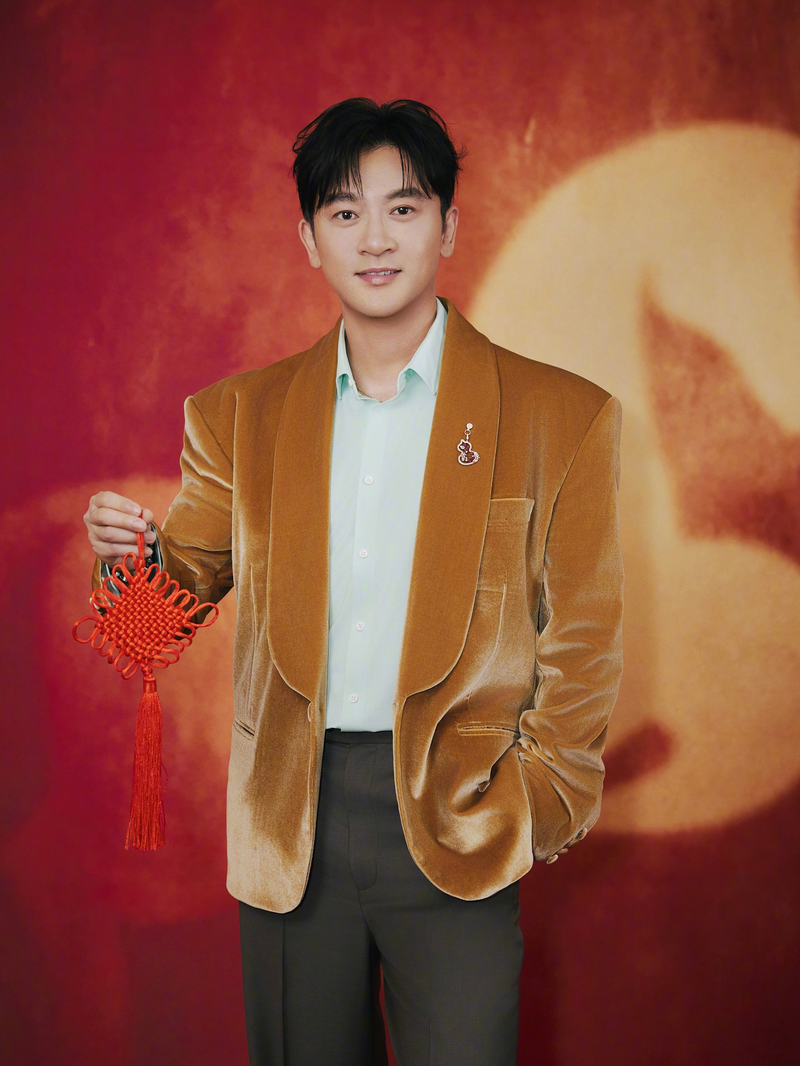 代言人李现身穿Prada棉质短夹克亮相春晚,红色夹克配修身黑裤清爽有型,期待舞台