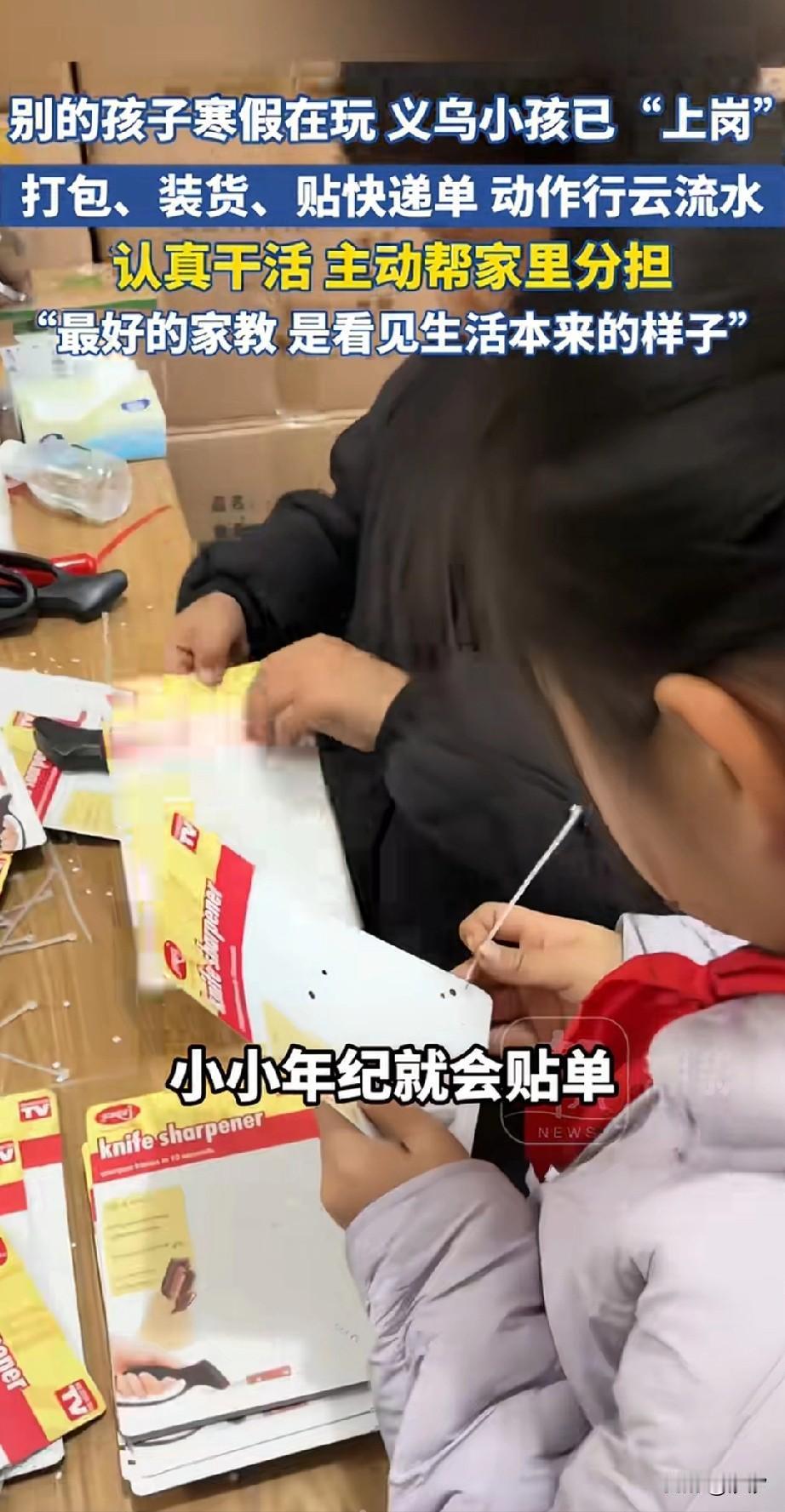 别的小孩子放假都在玩耍, 而义乌的小孩子可不是一般人, 他们居然直接上岗了, 周一家里面都是做网店发货的, 很多小孩子从小耳濡目染, 从小就会打包贴单发货, 放假刚好给家长帮忙, 一个个手法非常熟悉, 比老工人还要熟练, 这一套操作下来, 直接把外地人看傻了, 这样的孩子真的家教太好, 竟然会主动帮家长干活, 果然最好的家教是看得见生活本来的样子! 不知道经常进仓库干活的小孩子, 要个几千的红包,不过分吧? 大家觉得义乌的小朋友会有工资吗? 义乌打工日常 义乌小作坊 义乌小孩 义乌萌娃