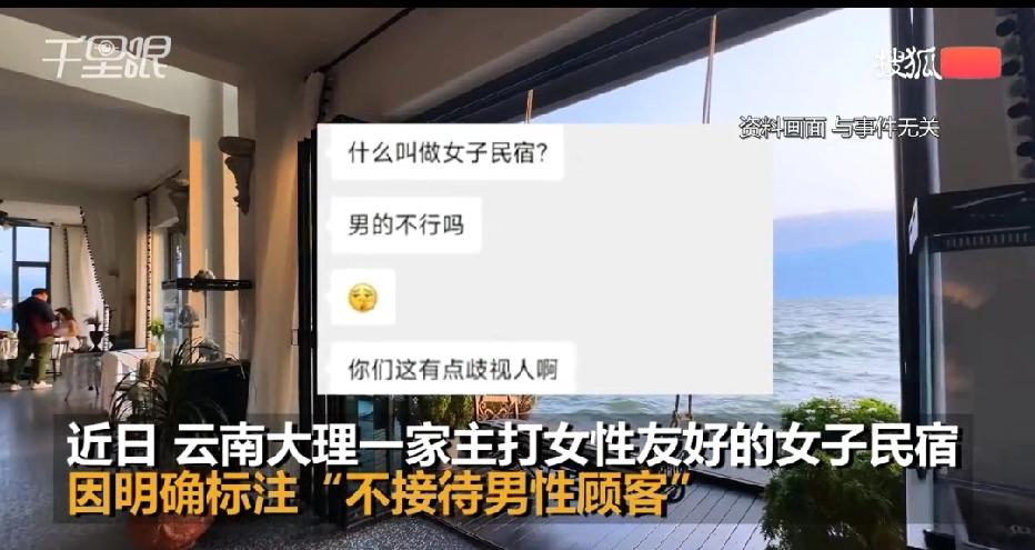 云南大理,一家民宿仅限女性入住,不接待男性。结果被一男顾客看到后,直接提出要入住。被店家拒绝后,男子很不满,当场吐槽:凭什么不让男的住?这不是性别歧视吗?还称要投诉。网友吵翻了。 近日,云南大理一家民宿因为一条入住规定,在网上引发了不小的争议。 这家民宿在预订平台上明确标注:本店仅限女性入住,不接待男性客人。 本是为女性游客打造的安心住宿,却被一名男性顾客质疑是“歧视男性”,一时间,双方观点在网上吵得不可开交。 据了解,这家民宿位于大理热门旅游区域,主打女性专属、安全舒适,主要面向独自出行的女生、闺蜜出行群体。 从开业至今,店家一直坚持只接待女性,并且在预订页面、详情介绍里都用醒目的文字写清楚入住限制,不存在任何隐瞒或临时变卦的情况。 可偏偏有一位男顾客,在明知民宿仅限女性入住的前提下,依然坚持要求办理入住。 被店家礼貌拒绝后,这位男顾客十分不满,当场提出质疑,并且情绪激动地吐槽:“大家都是花钱住店的消费者,你凭什么不让男性住?这摆明了就是性别歧视!” 他认为,酒店、民宿属于公共经营场所,只要开门做生意,就应该一视同仁,不能以性别为理由把客人拒之门外,这种做法对男性很不公平。 面对男子的指责,民宿老板既无奈又委屈,耐心地向对方解释自己的初衷,可对方并不接受,坚持认为店家的规定不合理。 随着这件事被发到网上,迅速吸引了大量网友关注,评论区立刻分成了两派,争论十分激烈。 绝大多数网友都站在民宿这边,觉得男子的指责完全站不住脚。 有网友直言:“女厕所、女更衣室、女生宿舍也只让女性进,怎么没人说歧视男性?” 还有网友表示:“人家提前写得明明白白,不接受可以不住,非要去较真,未免太较真了。” 很多独自旅行过的女性更是深有体会,她们说,一个人出门旅游,最在意的就是住宿安全。 半夜遇到陌生异性敲门、共用空间不方便、隐私得不到保护,都是常有的困扰。 女性专属民宿,恰恰解决了这些问题,在这里不用时刻紧绷神经,穿睡衣走动、洗漱、休息都更自在,这是一种合理的安全需求,根本不是歧视。 还有网友调侃道:“如果这算歧视,那男士理发店、男士健身房,是不是也算歧视女性?” 当然,也有少部分网友持有不同看法。他们觉得,民宿属于商业服务,不应该用性别划分客人,只要不违法、不影响他人,就应该拥有平等入住的权利,过度区分性别,反而会加剧不必要的对立。 那么,从法律上来说,民宿“只限女性入住”,真的构成歧视吗? 答案非常明确:不构成,也不违法。 相关法律规定,商家拥有合法的自主经营权,可以根据自身定位、服务人群做出合理限制。 只要店家提前公示、明确告知、没有侮辱或贬低任何性别,单纯为女性群体提供安全、私密的住宿环境,属于合法的细分服务,和性别歧视完全是两码事。 法律禁止的,是无端的、恶意的歧视行为,而针对女性安全、隐私需求设立的专属空间,符合社会公序良俗,也受到大众的普遍理解与支持。 换句话说,店家没有不让男性住所有民宿,只是不让男性住这一家,选择权依然在每个人自己手里。 这件事之所以能引发热议,本质上不是对立,而是大家对“安全需求”和“公平”的理解不同。 对女性而言,独自出行的安全感,是最基础也最重要的需求;对部分男性而言,则更在意形式上的平等。 做生意本就有目标人群,有人做亲子民宿,有人做老年公寓,有人做青年旅社,女性民宿只是其中一种正常业态。 明码标价、提前告知,不喜欢、不接受,完全可以选择其他酒店,没必要用“歧视”的标签去指责一份善意的服务。 大理作为旅游城市,每天都有大量独自出行的女性游客,她们需要更安心的落脚之处。这家民宿的出现,恰恰填补了这份需求,也让更多女性敢放心出门、放心看风景。 真正的平等,不是要求所有服务都一模一样,而是尊重不同群体的合理需求,多一份理解,少一份苛责。 最后也想问大家,你觉得民宿只限女性入住,算是性别歧视吗?