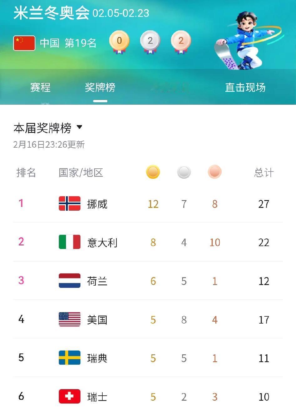 如果说荷兰是米兰冬奥速滑项目的王者,那么瑞士可以称为是高山滑雪的霸主。 今天在冬奥第十个比赛日,由于挪威选手麦克格雷斯在高山滑雪男子回转项目出发不久因意外失误没能成功完赛,这位金牌有力争夺者的退出让瑞士选手迈拉德稳获该项目的冠军,这样瑞士队就获得本次赛会高山滑雪项目的第四块金牌。 截至目前,米兰冬奥会高山滑雪项目已决出 11枚金牌中的8枚,瑞士队获得了其中4枚,占据半壁江山,绝对是笑傲江湖。另外,在最新奖牌榜,瑞士目前以5金2银3铜上升到第6位,其中高山滑雪是瑞士队金牌贡献的绝对超级大户。