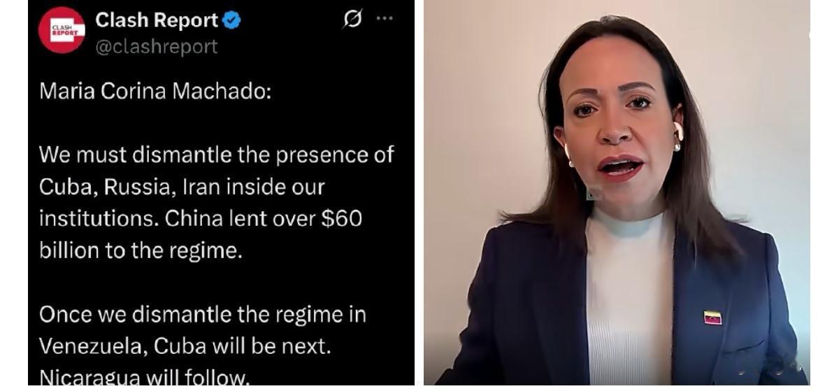 委内瑞拉极右翼暴力头目马查多继续发表招笑言论。 这就是典型的老百姓死活对她来说不重要,重要的是只要美国爸爸开心就好。