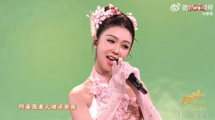 姜妍 国泰民安的美 姜妍央视春晚《立春》一出场,美翻啦!粉裙与翠绿舞台共绘春意,