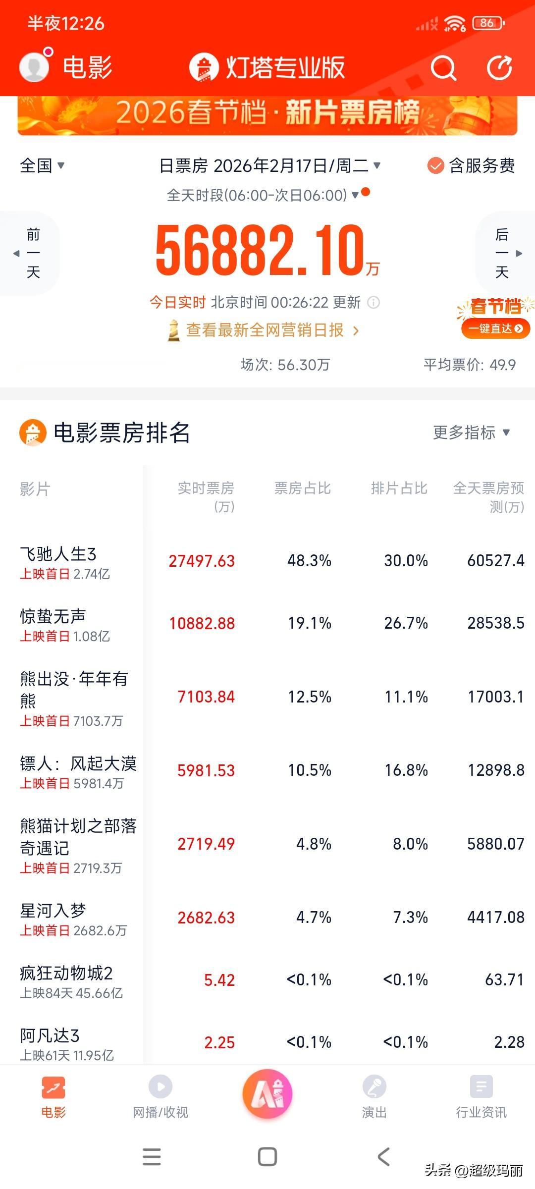 大年初一,单日票房预测超6亿了,到底是韩寒厉害,还是沈腾厉害呀