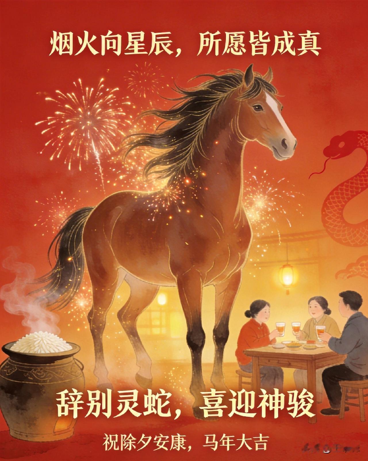 正月初一的晨光,是裹着昨夜爆竹残响里未散的余温,穿过红春联的门口,轻轻落在肩头的。 巷陌里还浮着淡淡的爆竹硝香,混着邻家蒸屉漫出的年糕甜糯、灶上炖肉的醇厚,酿成独属于新年开篇的、熨帖人心的人间烟火气。昨夜守岁的灯火还留着半盏温光,长辈笑着递来的红包裹着掌心的暖意,穿新衣的孩童攥着糖跑过巷口,清脆的笑闹撞在斑驳的院墙上,又弹进裹着暖意的风里。 这是农历新年的第一笔序章,是旧岁与新程最温柔的交接。除夕夜里碰过的团圆酒杯,咬开的带福饺子,都把过往一年的风尘与未竟的遗憾,妥帖收进了时光的封底。此刻天地皆新,晨光正好,连风里都藏着可期的温柔,仿佛往后三百多个日夜,都铺着素净的白纸,等着我们用三餐四季的烟火,一笔一划写下属于自己的圆满。 新的一岁,我想把最朴素也最真挚的祝福,妥帖安放。 愿家中长辈,晨昏无扰,岁岁安健,眼角的皱纹里,永远盛着闲话家常的笑意,与不必操劳的清闲; 愿挚友亲朋,前路有暖光,步履皆从容,风雨里有并肩撑伞的人,晴日里有同赴花期的伴,心有归处,行有坦途; 也愿每一个素未谋面的你,新的一年里,能接住生活藏在日常里的所有温柔与善意,在三餐四季的平凡烟火中,守得住自己的热爱,藏得住满心的欢喜。 不必强求万丈光芒,不必执着事事圆满。丙午马年新程启,愿我们都能带着初一这份满溢的欢喜与赤诚,如骏马般怀揣奔赴山海的勇毅,亦守得住烟火日常的从容,认真对待每一个晨起暮落,珍惜每一次相逢与陪伴。日子慢慢走,美好缓缓来,岁岁常安暖,年年有新喜。