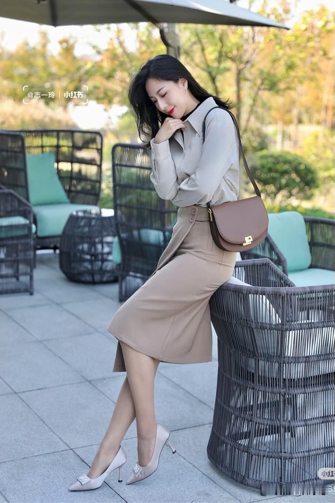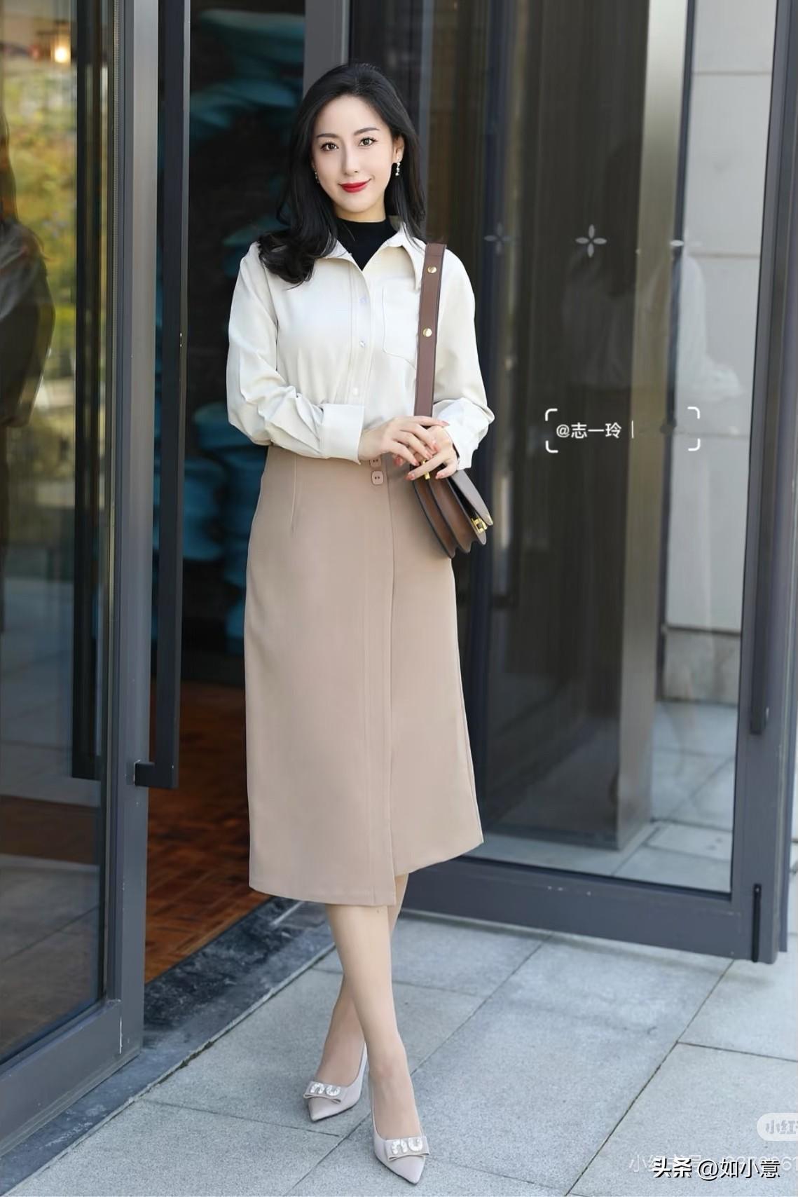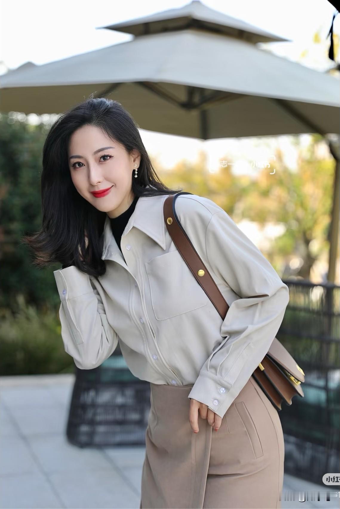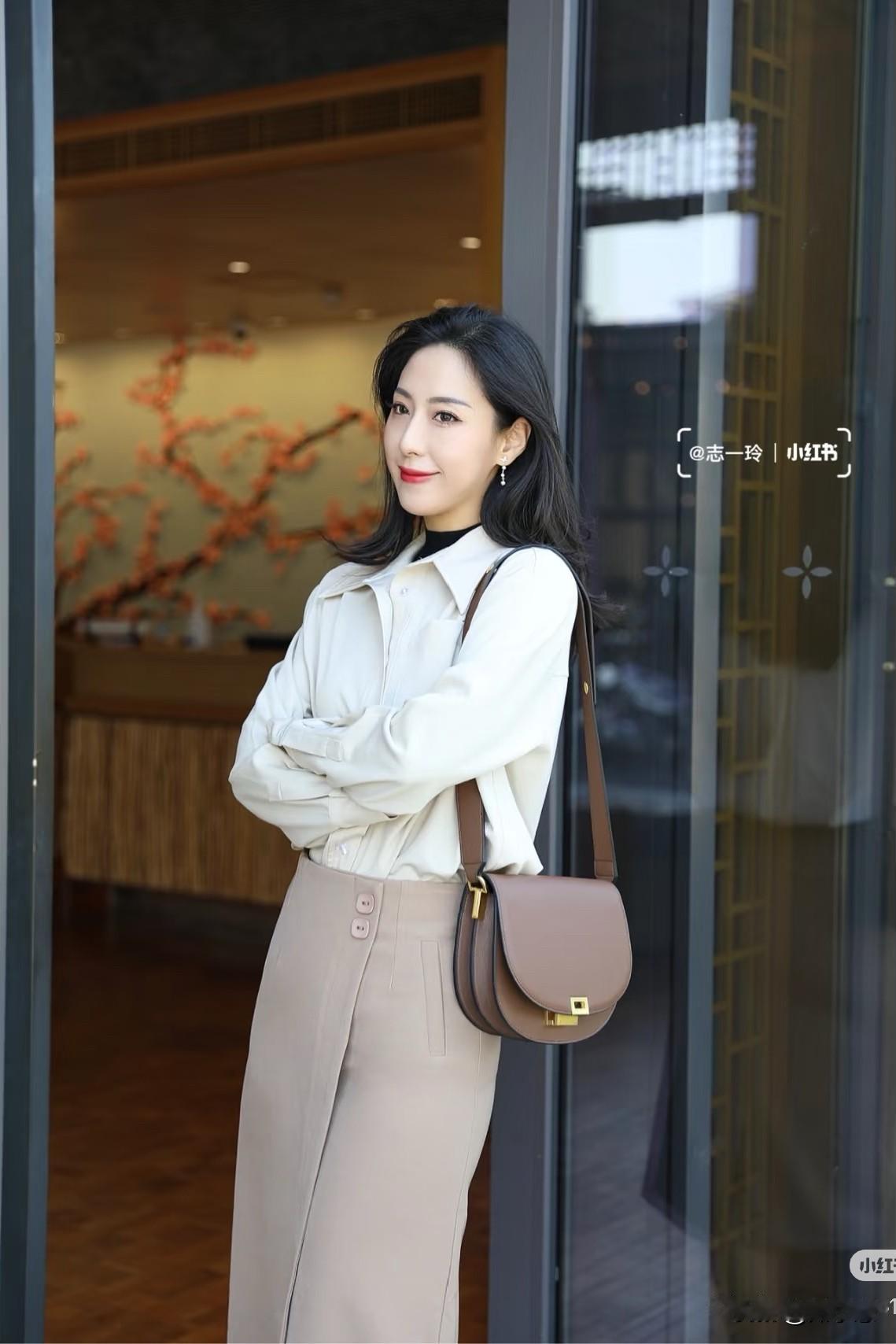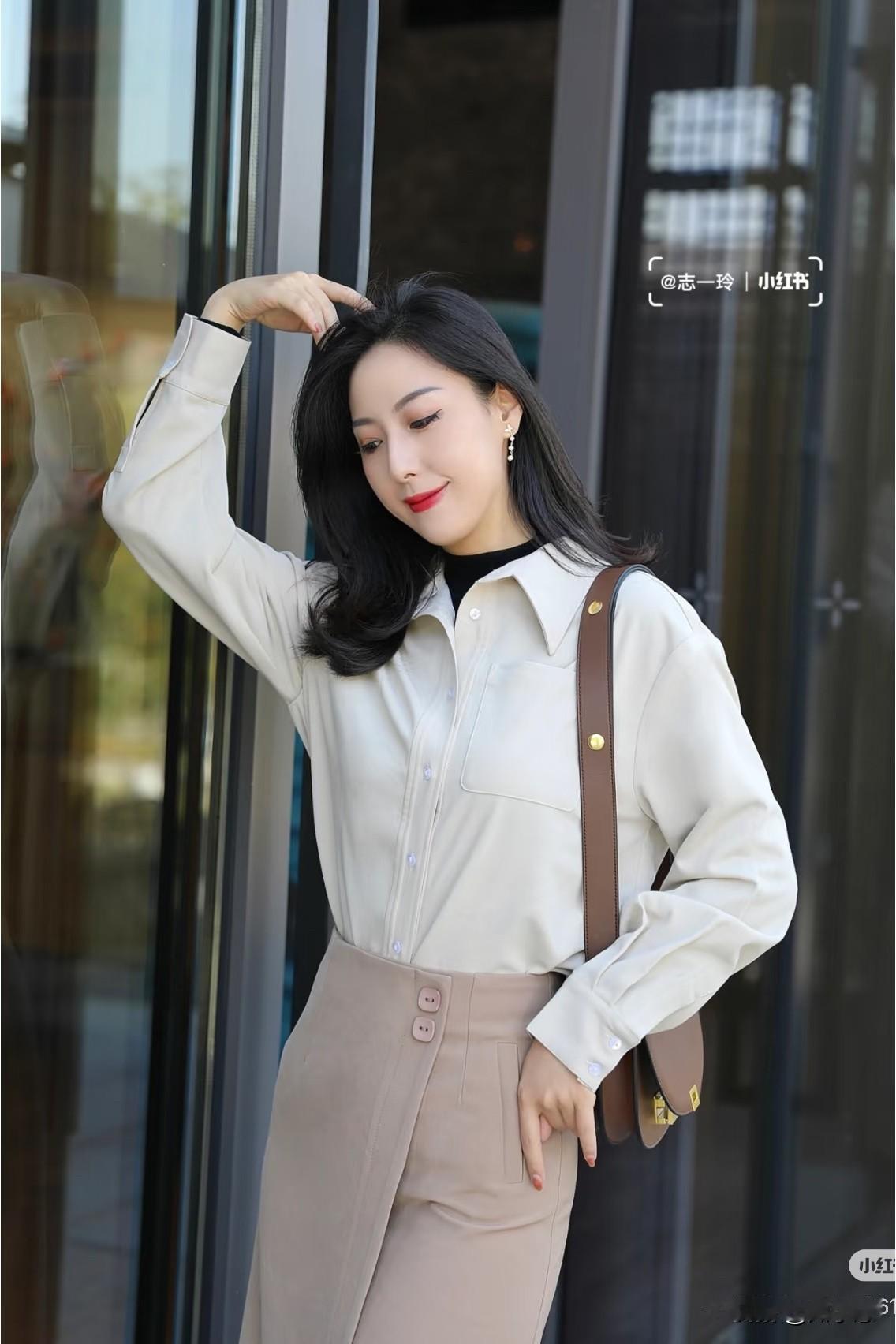 冬日穿搭指南:米色衬衫+棕色高腰裤,轻松优雅!