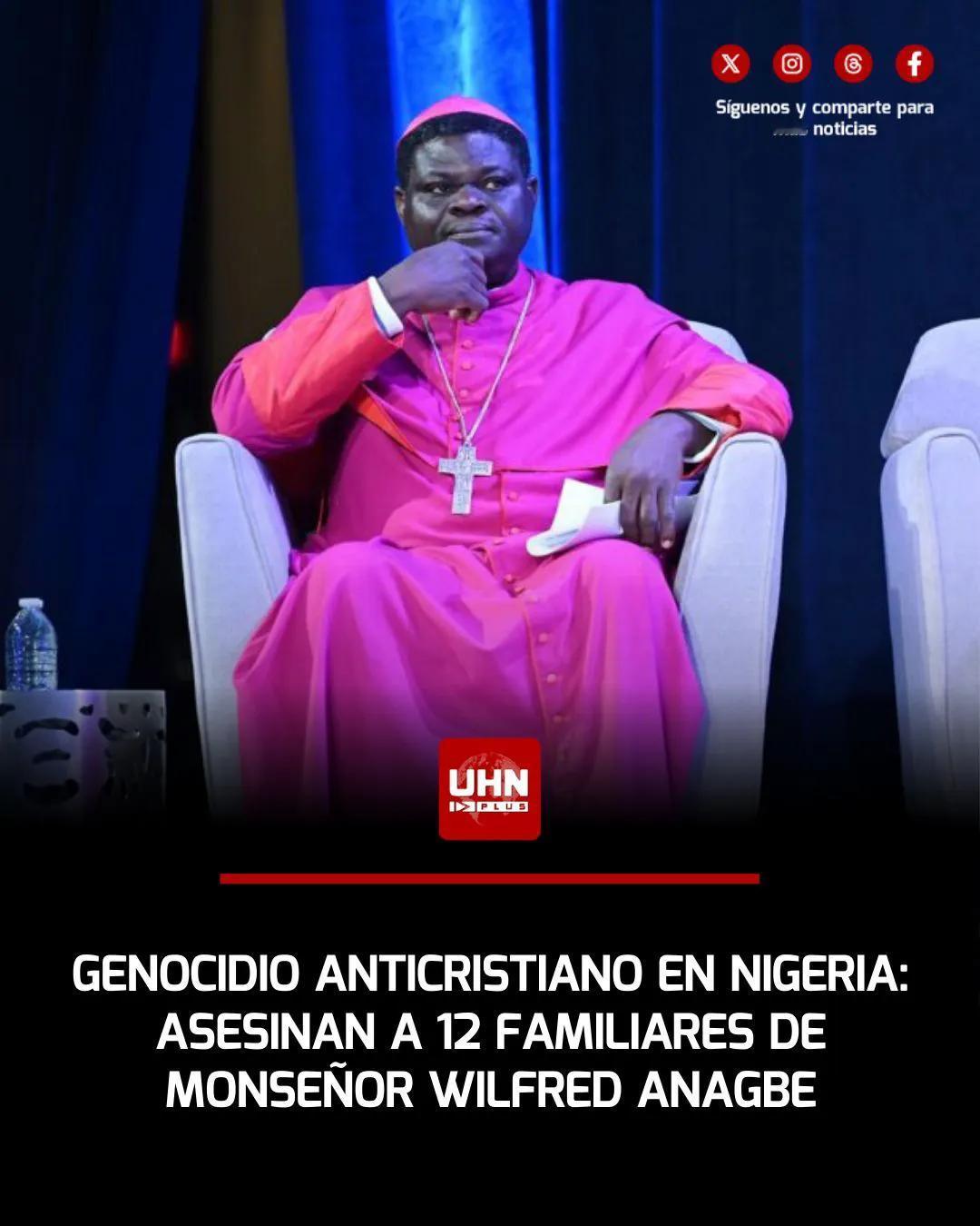 🇳🇬‼️ | 尼日利亚的伊斯兰恐怖主义对威尔弗雷德·阿纳格贝主教的12名亲属进行了屠杀,企图以此残酷地压制他对国际社会的谴责。据Vox党领袖豪尔赫·布克萨德称,主教当时正致力于在全球范围内揭露天主教社群遭受的灭绝,却惨遭极端分子冷血杀害。 🇳🇬‼️ | El terrorismo islámico en Nigeria ha perpetrado una masacre contra 12 familiares de Monseñor Wilfred Anagbe, en un intento brutal por silenciar sus denuncias internacionales. Según informó el dirigente de Vox, Jorge Buxadé, el obispo ya se encontraba en una misión global exponiendo el exterminio de comunidades católicas cuando los extremistas ejecutaron a su familia a sangre fría.