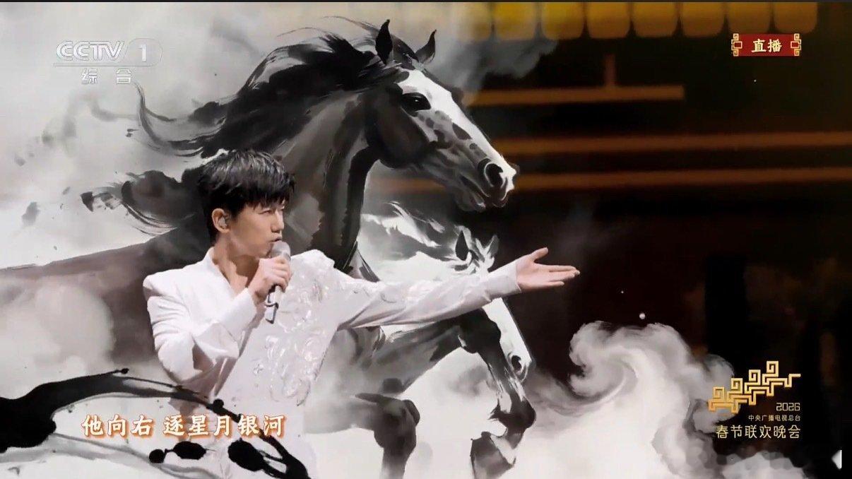 张杰0点后燃起来了张杰春晚驭风歌AI水墨六骏跃然舞台!张杰的歌声配上绝美国风