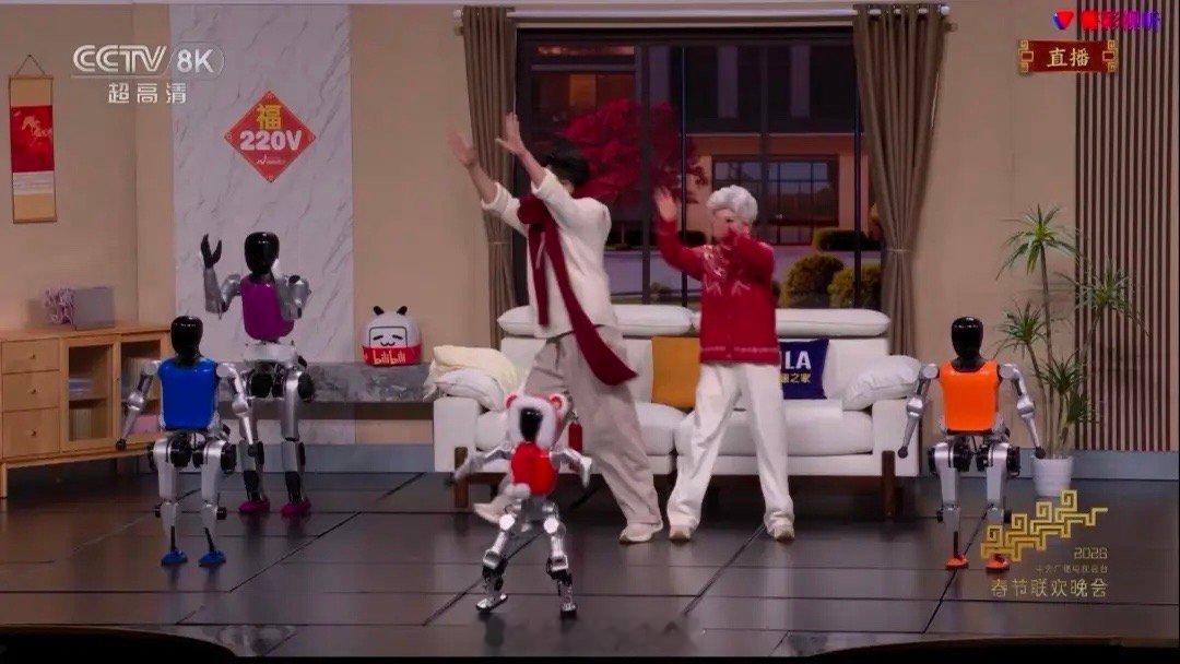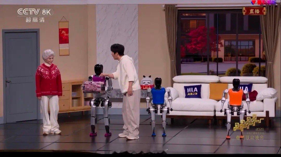 更让人出戏的,是毫无底线的广告植入。一台小品硬生生塞进三个广告,吃相未免太难看。蔡明拿着手机问豆包的情节,生硬得仿佛是在念广告词;沙发上那个海澜之家的枕头,镜头给得格外刻意,生怕观众看不见;就连舞台上翻跟头跳舞的机器人,后来也被证实是宇树品牌的植入。如此密集且突兀的商业联动,难免让人想问一句:春晚节目组这是有多缺钱,非要在语言类节目里这样“杀鸡取卵”?