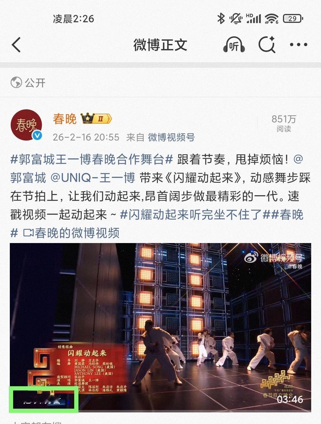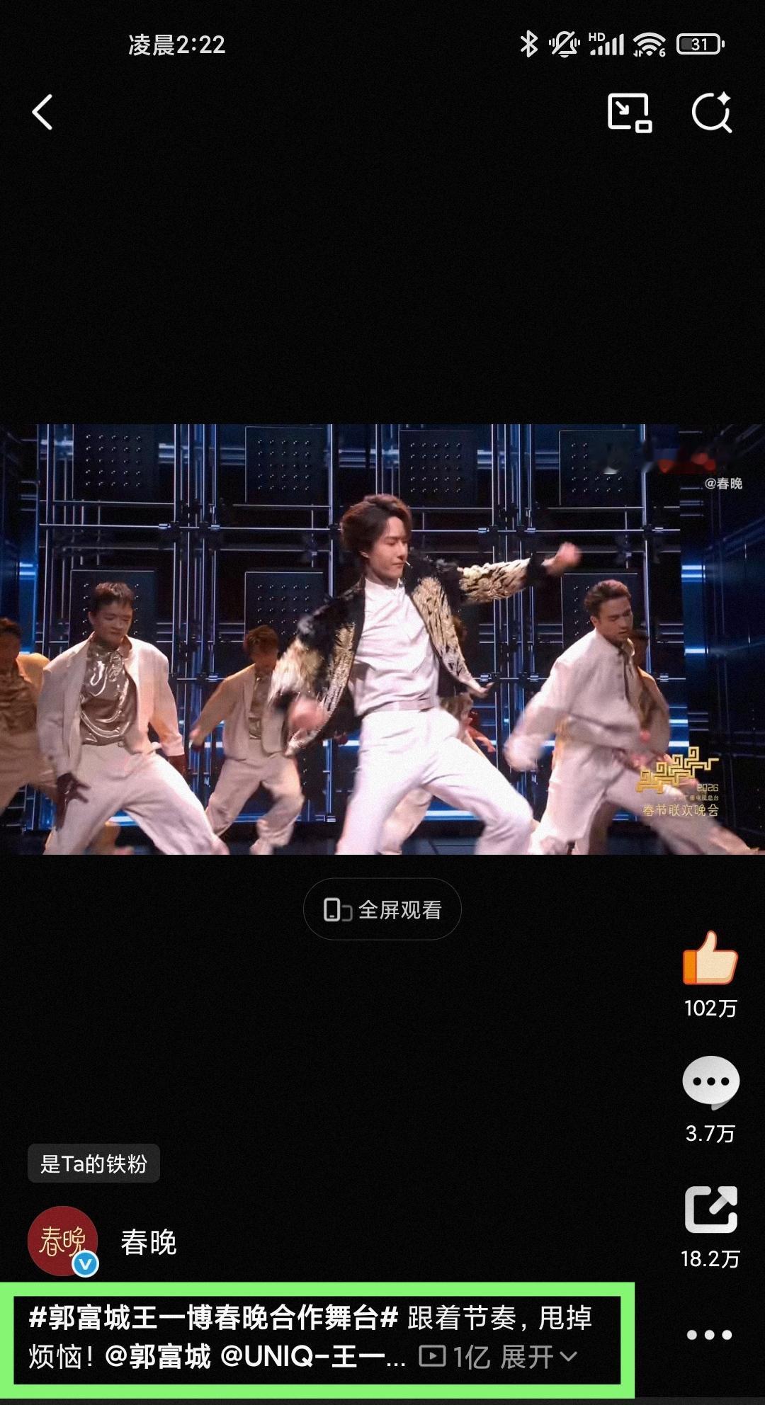 恭喜王一博又一个破亿舞台诞生! 王一博马年央视总台春晚唱跳舞台《闪耀动起来》在5.5小时内播放量破亿!!! 🎉🎉🎉🎉🎉🎉🎉🎉💚💚💚💚💚💚💚💚 王一博就是名副其实的“王亿博”!舞台,就是王一博的统治区,没有之一。 看过王一博的舞台,很难有人会不“爱上”他[大金牙]。 王一博 王一博春晚舞台播放量破亿