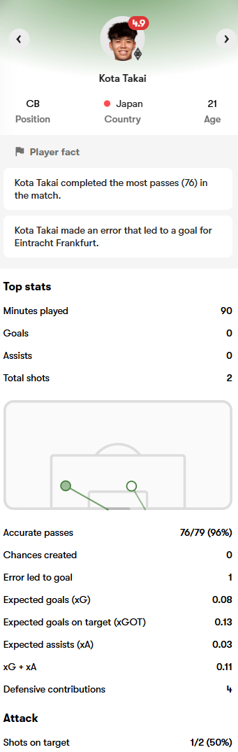 德甲:门兴 0-3 法兰克福,高井幸太打满全场。