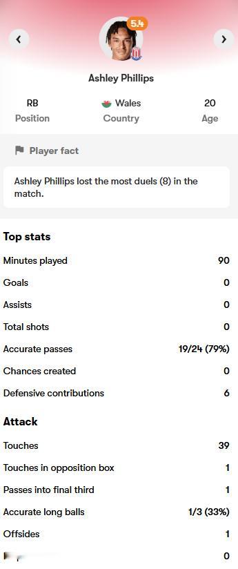 足总杯:斯托克城 1-2 富勒姆,菲利普斯打满全场。