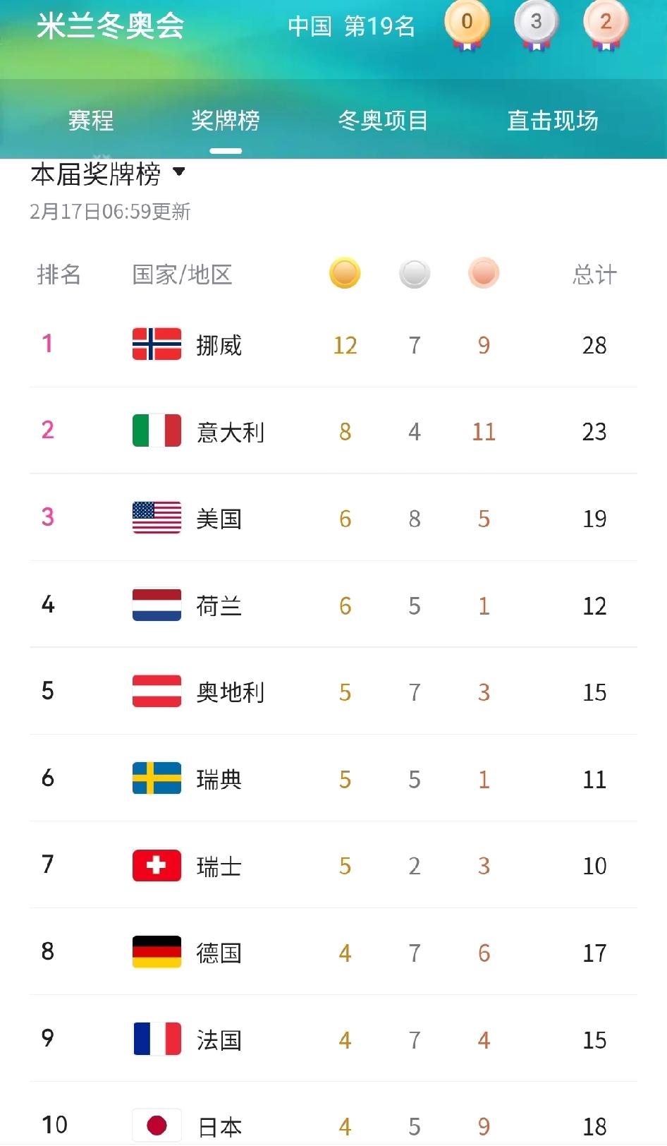 马年大年初一清晨,米兰冬奥第十比赛日全部结束,奖牌榜的格局没有太多变化,东道主、