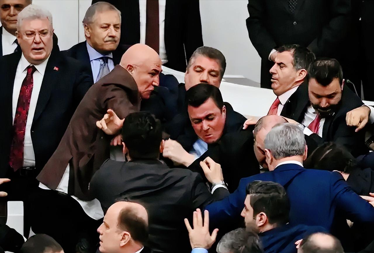 笑不活了!土耳其议会直接演变成格斗场了,原本该正儿八经进行的司法部长就职宣誓,结果执政党和反对党议员打了起来,推搡、挥拳轮番上演,现场一片混乱,会议被迫喊停,土耳其政坛的矛盾彻底摆上了台面。 因为反对党议员压根不认可这次任命,当场就上前阻拦,而执政党议员自然要护着提名的人选,双方一言不合就起了争执,情绪一激动就开始动手。 其实反对党不是毫无缘由的闹事,而是打心底里质疑居尔莱克的立场,直言他存在明显的政治偏见,在他们看来,这次的司法部长任命很不公正,反而更像是执政党为了把控司法体系的刻意安排,担心居尔莱克上任后,司法部门会沦为政治工具。 混乱发生后,议长也没了办法,只能紧急宣布休会15分钟,先把现场的秩序恢复过来,可这短暂的休会,并没有化解双方的矛盾,只是暂时按下了冲突的暂停键。 等休会结束,居尔莱克竟然在执政党议员的层层簇拥下,还是完成了就职宣誓,执政党看似拿下了这一局,但朝野之间的裂痕却被撕得更开了。 这场议会打架事件,可不是一次简单的突发矛盾,而是土耳其政坛长期分歧的集中爆发,司法部门作为国家运转的关键环节,其独立性本就备受关注,而这次的人事任命,恰好戳中了反对党对执政党干预司法的担忧。 原本议会是各党派理性讨论、解决问题的地方,如今却变成了拳打脚踢的现场,不仅让议会的议事规则成了摆设,更能看出土耳其政坛的极化有多严重。 居尔莱克虽然顺利就职,但反对党的质疑不会消失,后续土耳其的司法运作和政坛互动,恐怕会因为这次的冲突,迎来更多的矛盾和挑战,想要平稳推进各项事务,难度也变得更大了。