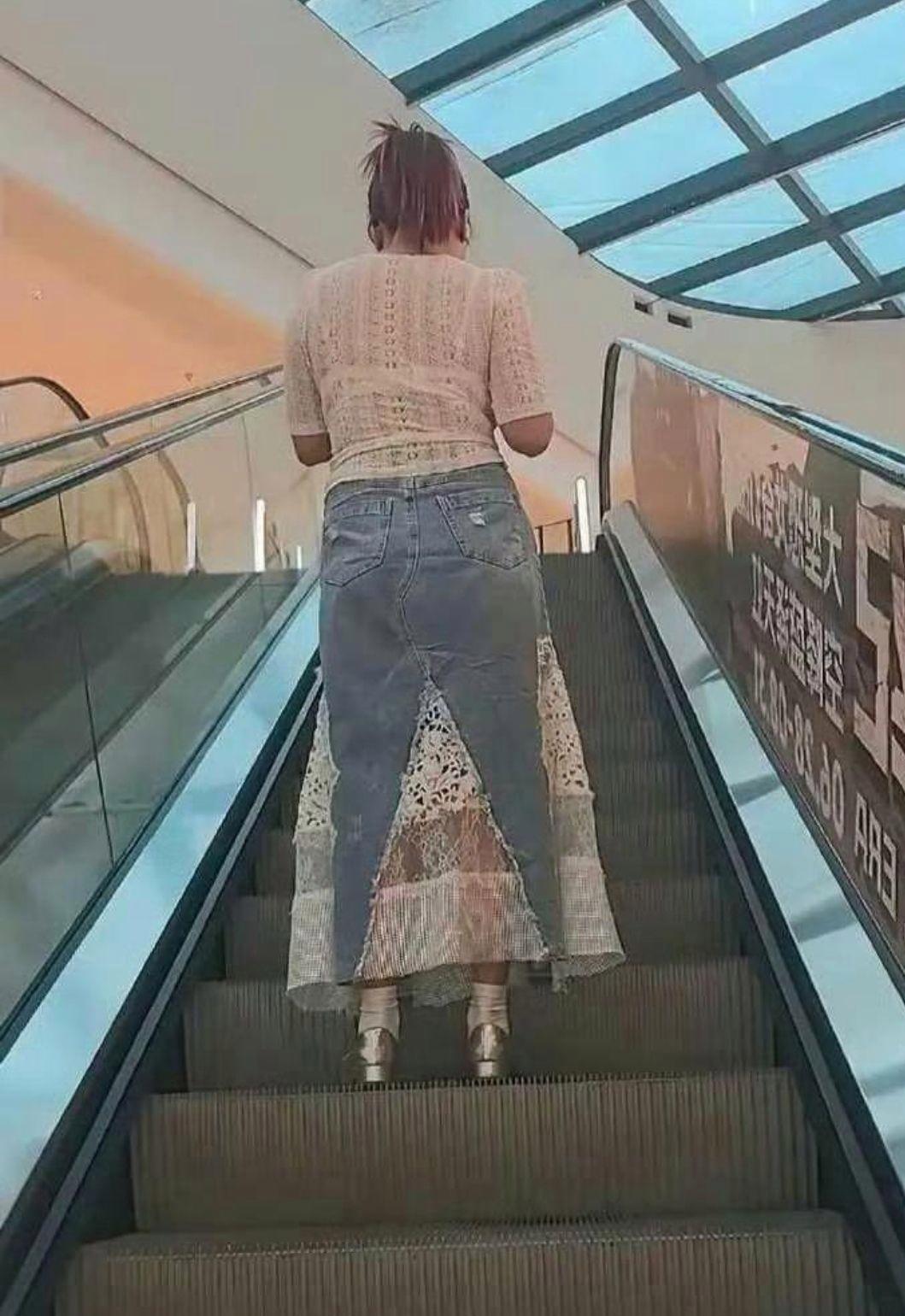 唉呀妈呀,这女子裙子太丑了 某地商场,上电梯时偶见一女子,梳着马尾辫,上身穿着一粉色针织衫,下身是一条裙子,裙子好像是牛仔裤,和几块碎片拼接而成的。 说实话,这奇装异服,丑得有盐有味,也不知谁脑洞大开,设计的这款裙子,难道这也是一种时尚? 关键是还有人欣赏这款裙子,是智商堪忧,还了下半身的行为艺术呢?真是弄不明白。 大千世界,无奇不有,我们看个稀奇,见怪不怪吧。[捂脸][大笑]