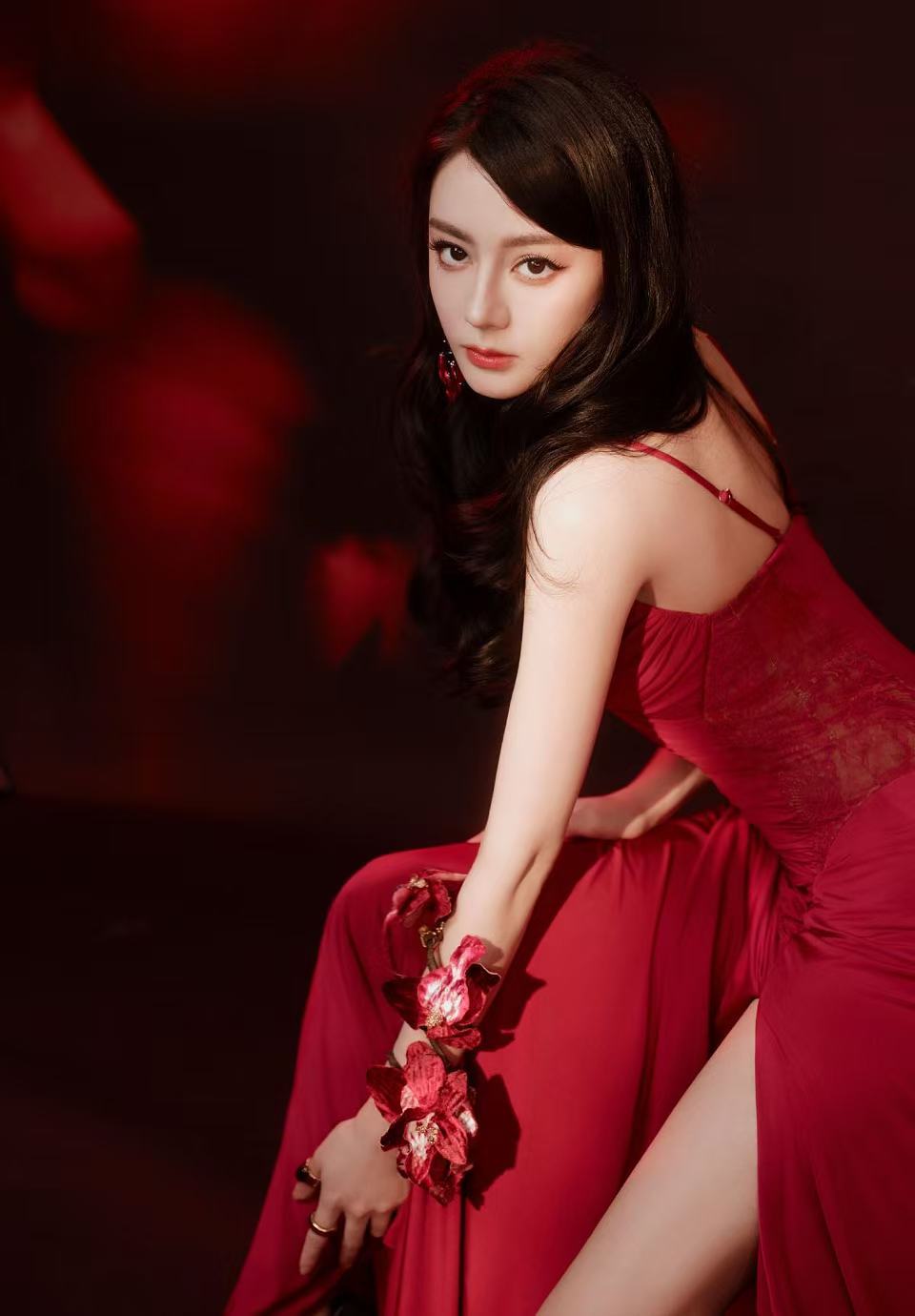 迪丽热巴高开衩红裙迪丽热巴马年好运传递迪丽热巴小马在手福气全有迪丽热巴