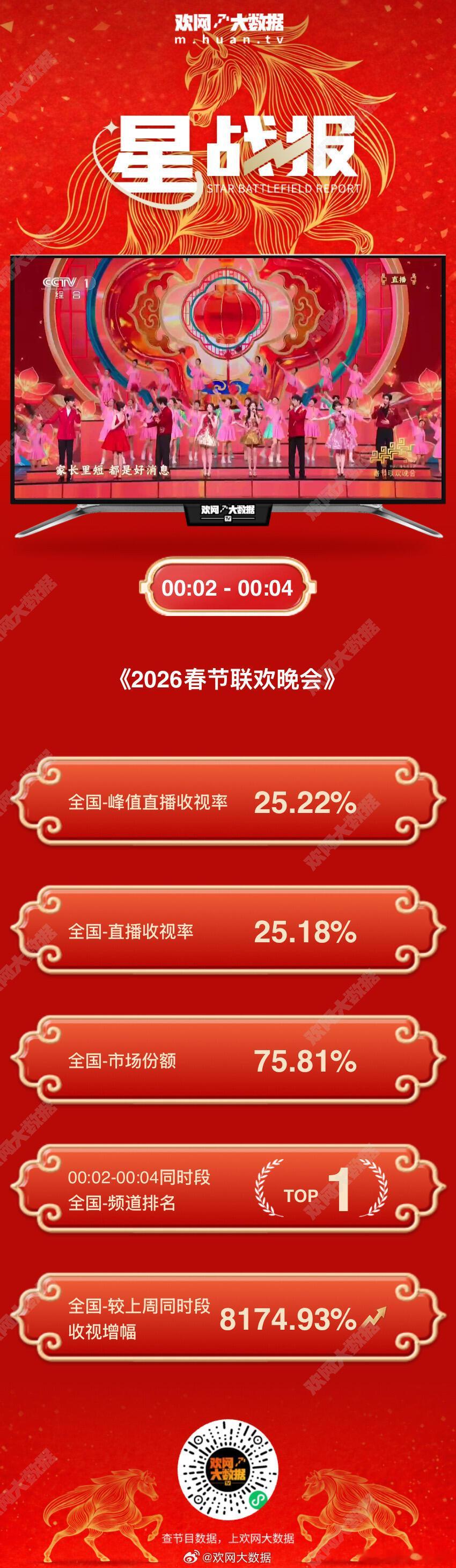 央视马年春晚《串门指南》刚落幕,战报就马不停蹄地端上来了,马年春晚大年初一第一个