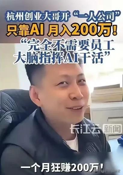 “人怎么能这么聪明!”浙江,一男子想要创业,但又不想投入太多成本,他灵机一动,开了一家只有自己的公司,平时就靠AI打工,现在已经月入7位数,虽然男子春节都不能休息,但他却笑着称“一点班味儿没有”! 男子姓武,杭州上城区人,今年32岁,早年学的是船舶航海专业,还跟着船队跑过远洋。海上的日子枯燥又漂泊,工资不算低,却连安稳陪家人吃顿饭都成奢望,干了不到一年他就下定决心转行。 他先后做过电商运营、品牌策划,在中小企业摸爬滚打十年,攒下了扎实的行业经验,也看透了传统创业的痛点。 租办公室、招员工、备库存,每一项都要砸进真金白银,身边不少朋友创业失败,全栽在了重资产的泥潭里。他不想重蹈覆辙,手里的积蓄不多,只想找一条轻资产、低风险的路。 2025年下半年,AI工具全面普及,商用大模型的落地能力持续提升,他看着身边人用AI完成文案、设计、数据处理等工作,突然冒出一个大胆的想法。 他注销了之前兼职的工作室,注册了一家只有自己一人的小微企业,办公地点就在家里的书房,一台电脑、一套AI工具矩阵,就是全部家当。 他把自己定位成公司的唯一决策者,AI则承担全能员工的角色,市场调研、文案撰写、海报设计、短视频剪辑、智能客服、数据复盘,所有重复繁琐的执行环节,全交给AI高效完成。 他没有随意投喂模糊指令,而是把十年行业积累的客户偏好、输出标准、合规要求,逐一整理成精准的提示词模板。 客户发来需求,他只需要快速拆解核心诉求,把清晰框架发给AI,半小时内就能拿到合格初稿,他再做最终审核和细节调整,交付效率比传统5人团队还要高出数倍。 公司没有人力成本、没有场地租金开支,每月只有三千多元的AI工具订阅费和电费,营收几乎全部转化为利润,短短半年时间,月收入就稳定在7位数,这是他打工时想都不敢想的收入水平。 今年春节,不少老客户赶着筹备节后营销活动,定制化需求扎堆涌来,他没法像普通人一样彻底停工休息。 大年初二早上,他坐在书桌前对接完3个客户的核心需求,AI同步启动生成方案,下午他就陪着父母逛庙会、备年货,全程不用被上级催促,不用应付职场人情内耗,更不用纠结考勤打卡和加班补贴。 他说自己没班味儿,不是不用付出劳动,是干活时没有半点职场规训带来的精神压迫,每一分付出都直接对应自身收益,心里只有踏实,没有半分疲惫。 很多人觉得他是碰运气踩中风口,其实这份成功里藏着清晰的推理链条。AI只是提升效率的工具,真正支撑他走下去的,是十年行业认知、稳定的客户资源和精准的需求把控能力。 2026年,AI一人公司已经成为精益创业的主流范式,不少人跟风尝试,却因为不懂行业逻辑、不会调教AI、没有客户积累,最终只能草草收场。 他能跑通这套模式,是先把自己扎进行业里练出硬本事,再借AI的技术杠杆放大个人能力,用最小的成本撬动最大的商业收益。 职场里的班味儿,从来不是劳动本身带来的,是考勤约束、无效会议、层级内耗、个人价值不被认可层层堆叠出来的。无数年轻人被困在写字楼格子间里,每天消耗在无意义的流程和社交里,想逃离却不敢轻易迈出步子。 武先生的经历,给了普通职场人一个新的思考方向,创业不必背负重资产压力,打工不必困在固定职场框架里,找准自身核心优势,借势新技术工具,就能把生活的主动权牢牢握在自己手里。 靠认知变现,用工具减负,不被职场规训绑架,活成自己生活的主导者,这才是普通人最值得追求的生活状态。各位读者你们怎么看?欢迎在评论区讨论。