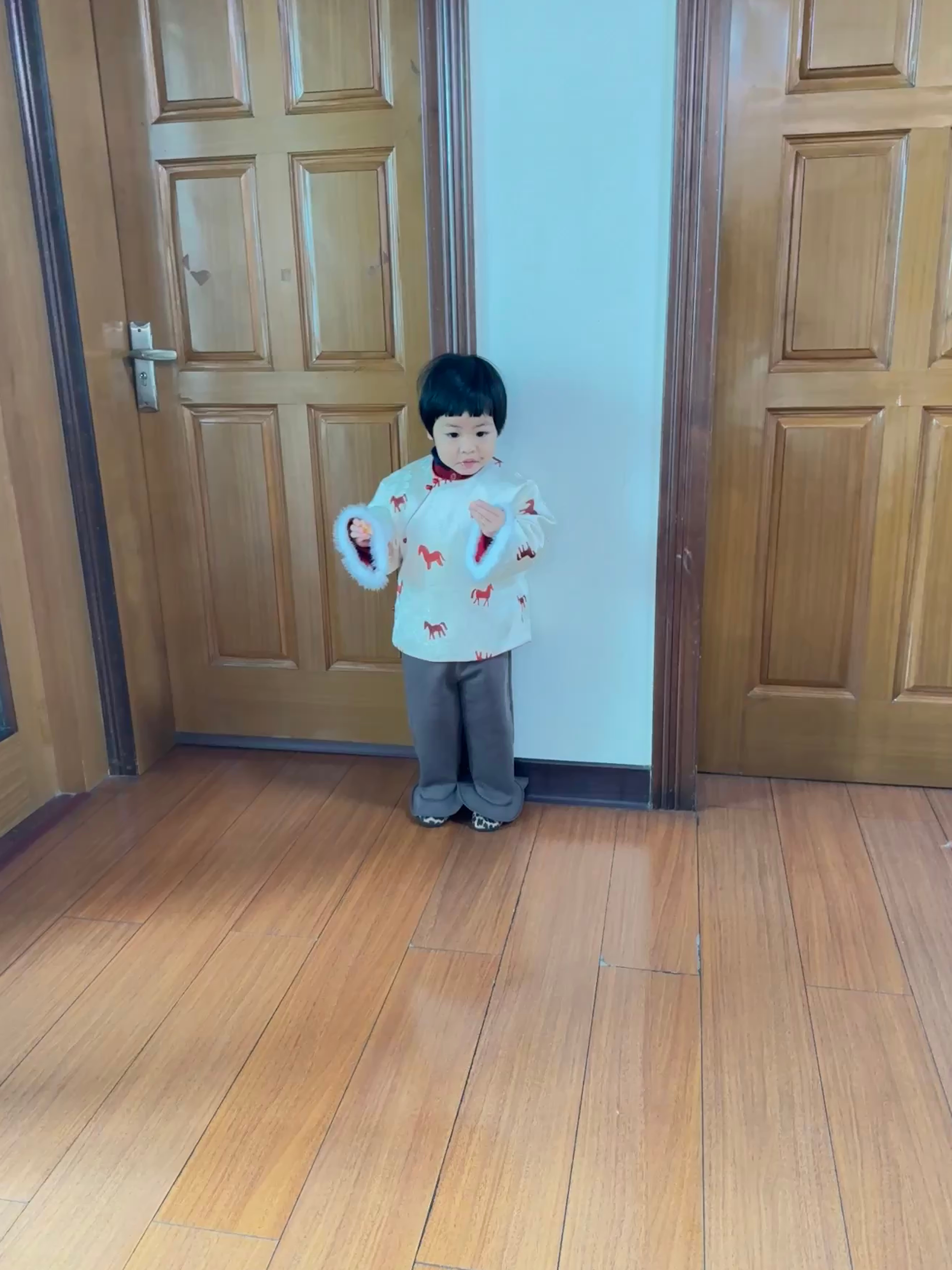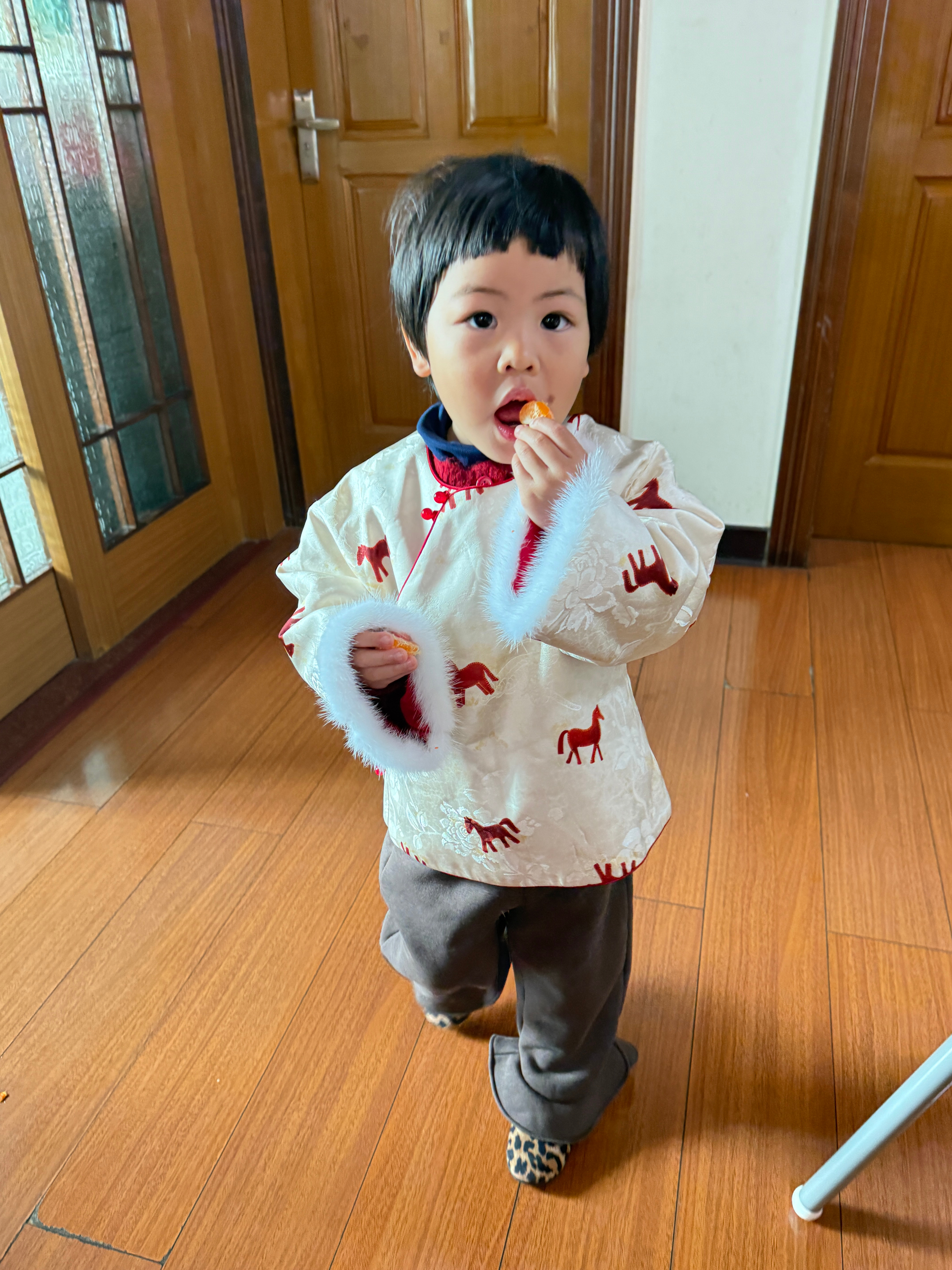 (今天这套如何?衣服黄姨买的)