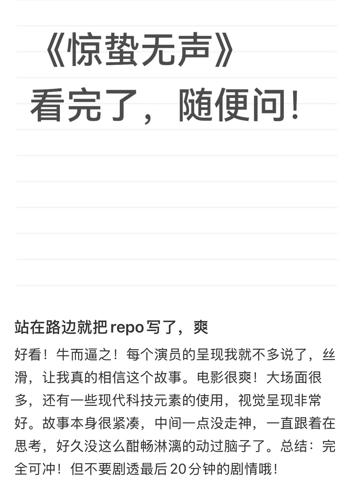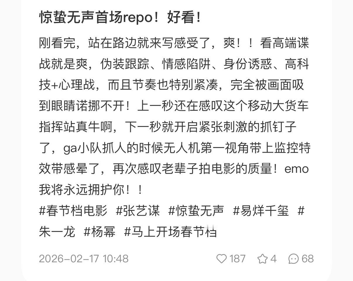 惊蛰无声惊蛰无声口碑 电影惊蛰无声 目前刷到都是好评下午去看看