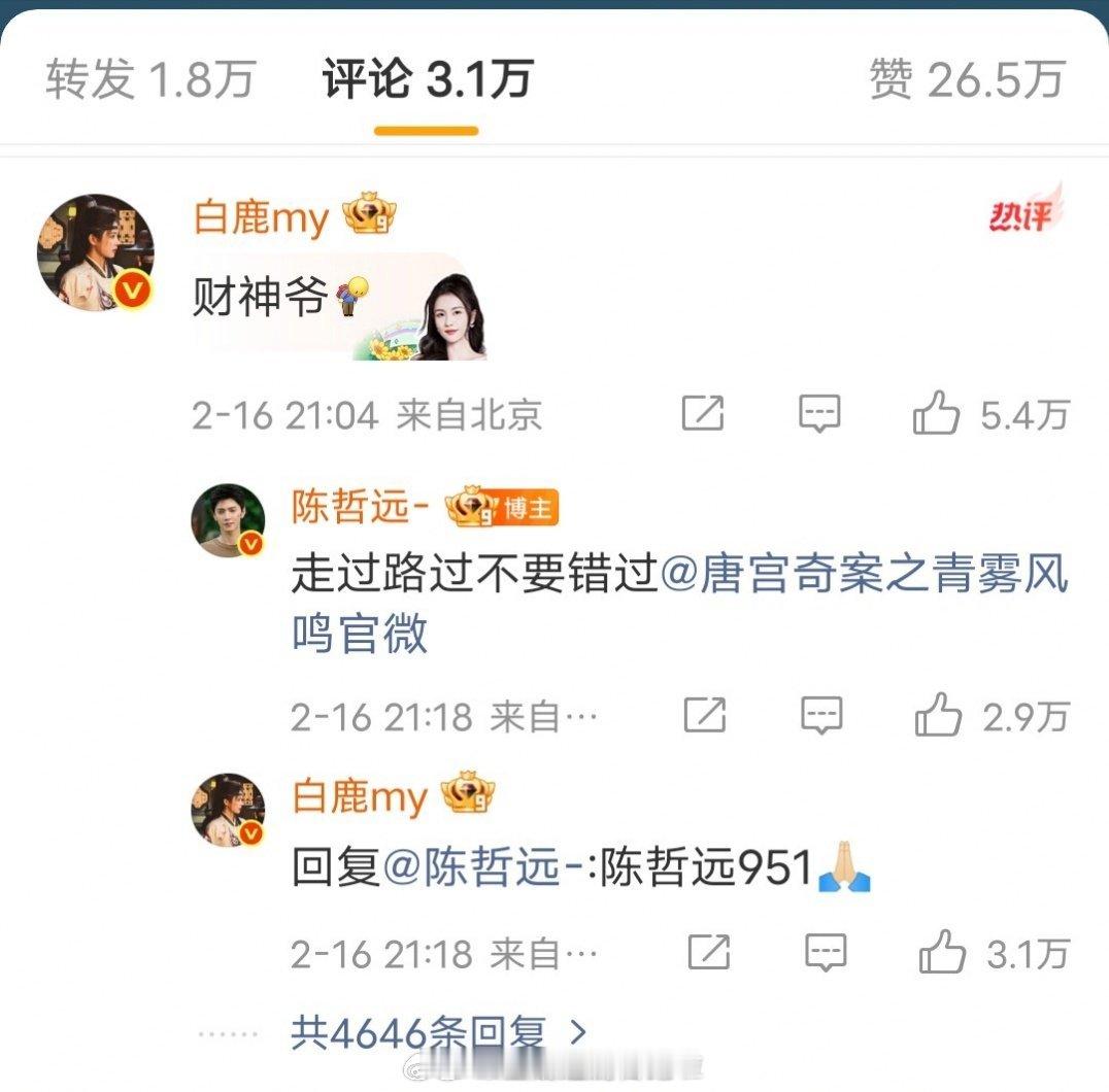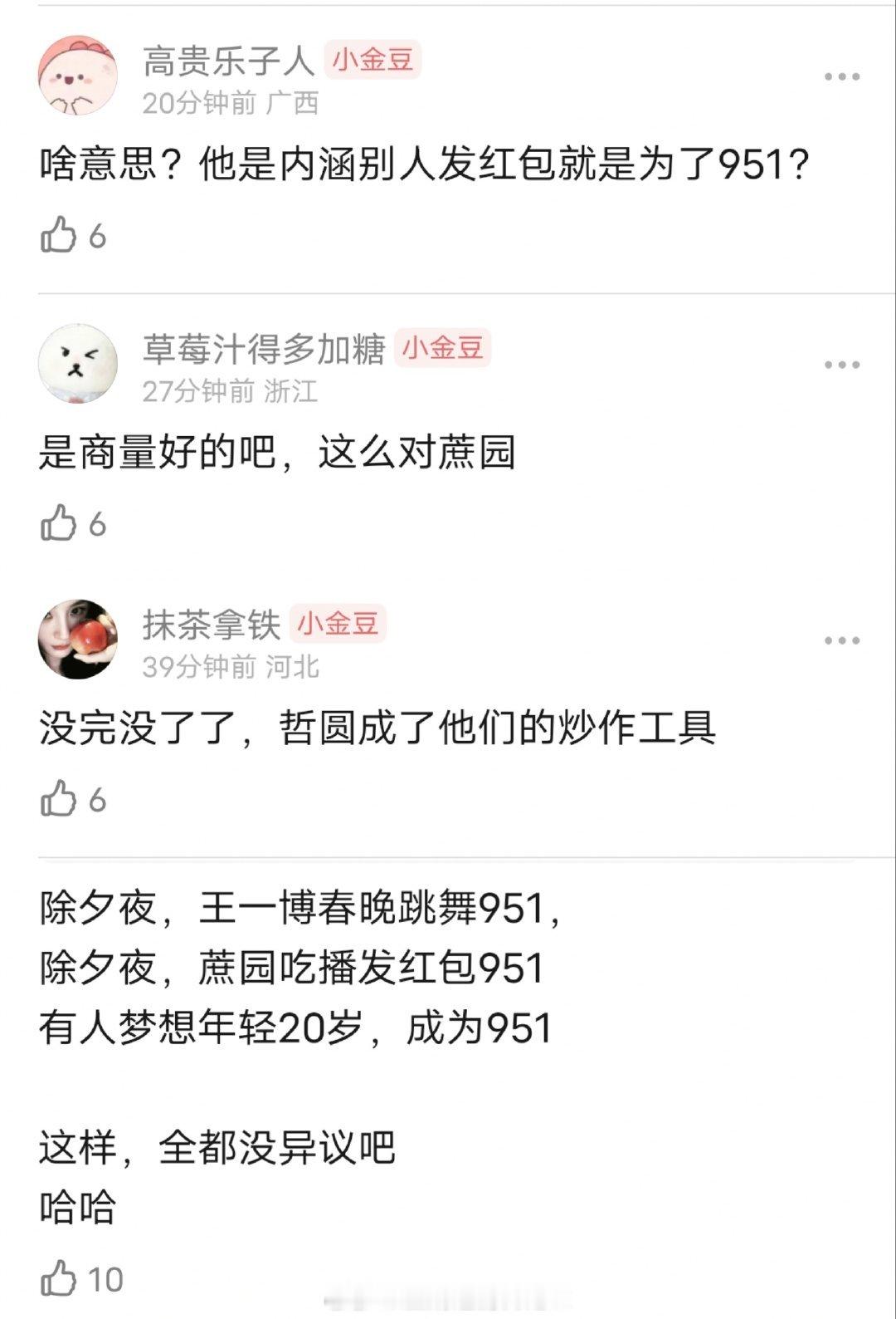 网友让于正发红包,于正说可以951吗?不然干嘛要发?他啥意思,内涵别人发红包就是为了951?红包明星红包陈哲远回复白鹿