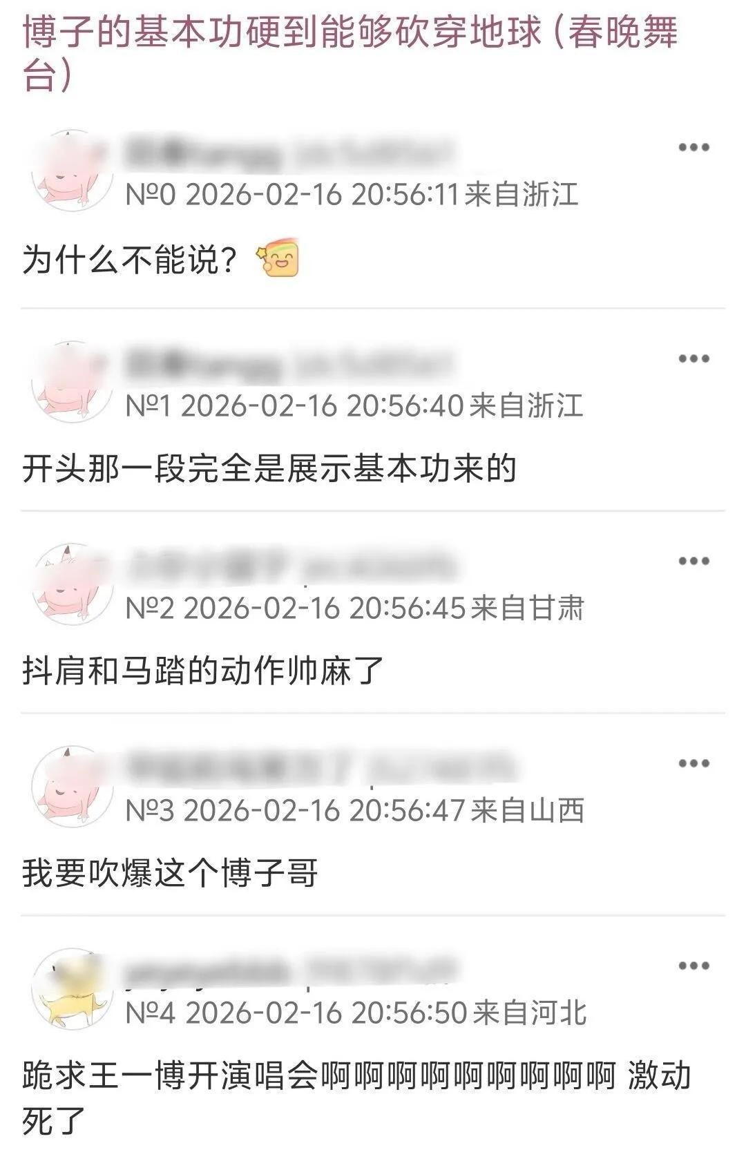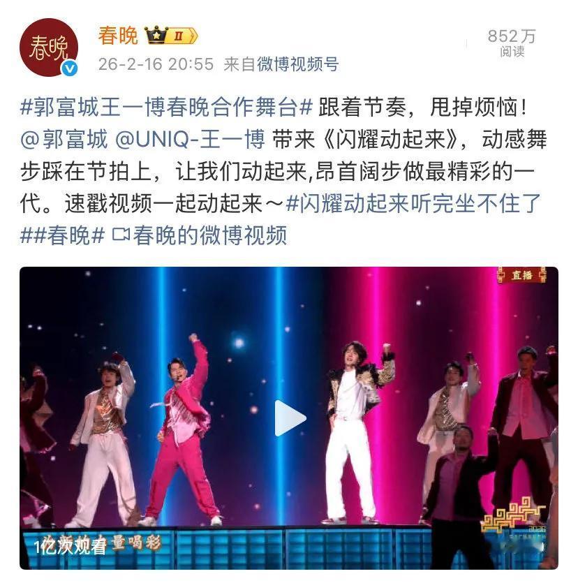 马年春晚,观众妙评:“王一博在和人工智能对抗中胜出”[大笑][大笑][大笑] “机器人练武术为股票争一口气,王一博跳街舞为人类争一口气 ”。 ……好多梗[偷笑] 王一博春晚舞台真的炸场,破亿次播放量,现场观众欢呼声巨大。现场看更燃更炸,春晚镜头运镜吞掉了王一博的很多动作细节。 王一博一脚下去,地板划出两道线。央视也别让赔了,让他上三十年春晚跳舞就行了。 你会守在电视前看马年春晚吗