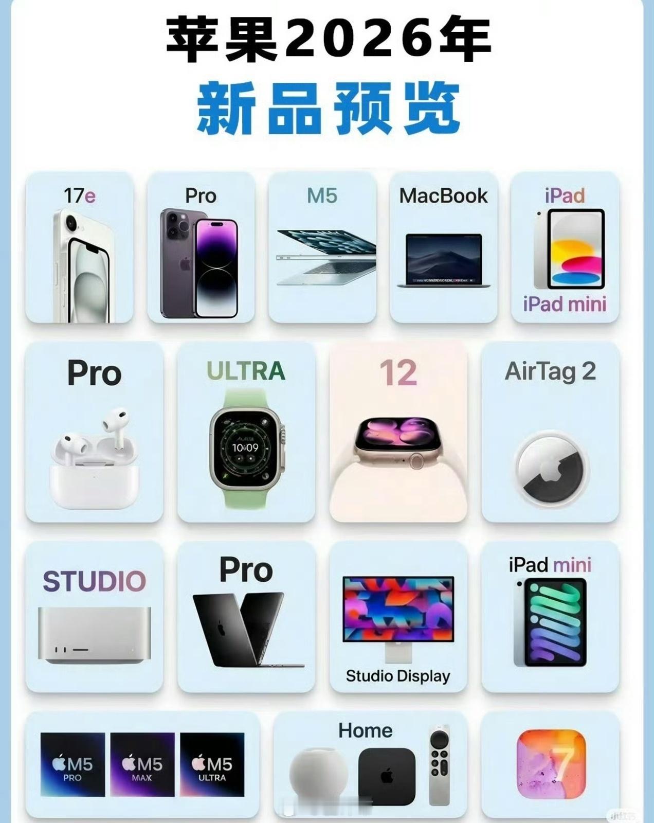 iPad & 配件iPad 12:A18芯片+8GB内存,入门款首次支持AI。iPad Air 8:换装M4芯片。Studio Display 2:终于加上ProMotion高刷!