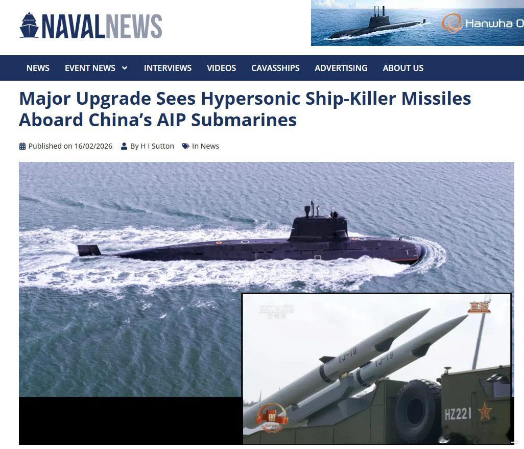 法国《海军新闻》评论中国039B潜艇试射YJ-19潜射导弹,说中方媒体披露039B型元级柴电潜艇已试射YJ-19高超音速导弹。这一低调的宣布显示了中国海军力量持续快速增长。这赋予了潜艇新能力,使元级成为世界上唯一拥有此类武器的非核潜艇。高超音速反舰导弹专门设计用于突破现有军舰上最强大的防御。它们将使中国的元级潜艇成为武装最强大的非核潜艇。YJ-19导弹首次公开亮相是在2025年9月北京举行的阅兵式上。这是一种吸气导弹,具有高超音速武器的特征。它很可能采用超燃发动机以实现持续高超音速飞行。039B型元级潜艇则是中国常规潜艇舰队的主力潜艇,据信已有13艘服役。它拥有AIP,意味着它可以以低速巡航数天甚至数周而不浮出水面。它们由较早的039A型和仍在生产的新型039C型补充。最终所有039B型和039C型潜艇很可能都将装备新型高超音速导弹。YJ-19导弹类似于俄罗斯的3M22锆石导弹。与锆石相比,YI-19似乎专注于反舰角色。虽然锆石也被视为反舰导弹,但在俄乌战争中也被用于打击陆地目标。中国陆攻导弹通常会被命名为CJ(长剑)。不过这并不排除YJ导弹对陆地目标使用,但确实体现了其教义上的重点。YJ-19相较锆石导弹的主要优势在于可以从水平鱼雷发射管发射,这意味着老旧潜艇可以升级以携带它。锆石也被装载在俄罗斯潜艇上,但仅限于配备垂直发射管的潜艇。这排除了它被安装在俄罗斯普遍使用的基洛级潜艇上。中国目前至少装备了三种舰用或潜射的高超音速反舰导弹,分别是YJ-17、YJ-19和YJ-20。新武器数量之多,以至于这些名称的列表即使对海军观察者来说也很容易混淆。用YJ-19导弹改装庞大的常规潜艇艇队,将大大提升单艇以及整个艇队的战力。