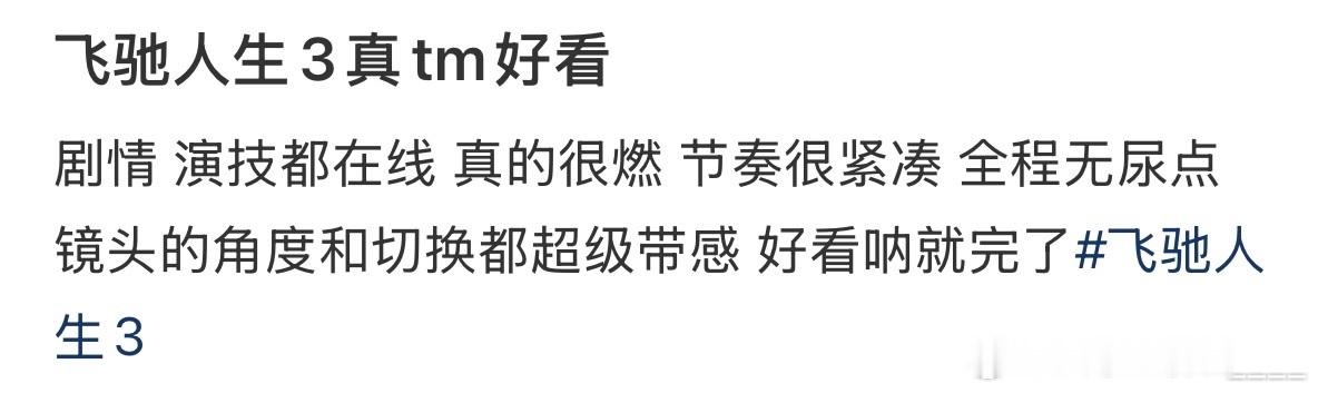 飞驰人生3飞驰人生3好看吗 引擎的轰鸣声就像激昂的战歌,奏响了速度车在赛道上飞驰,就像一道闪电划破夜空,璀璨又耀眼。这电影带来的燃爽体验,让我仿佛置身于一个充满热血的世界!