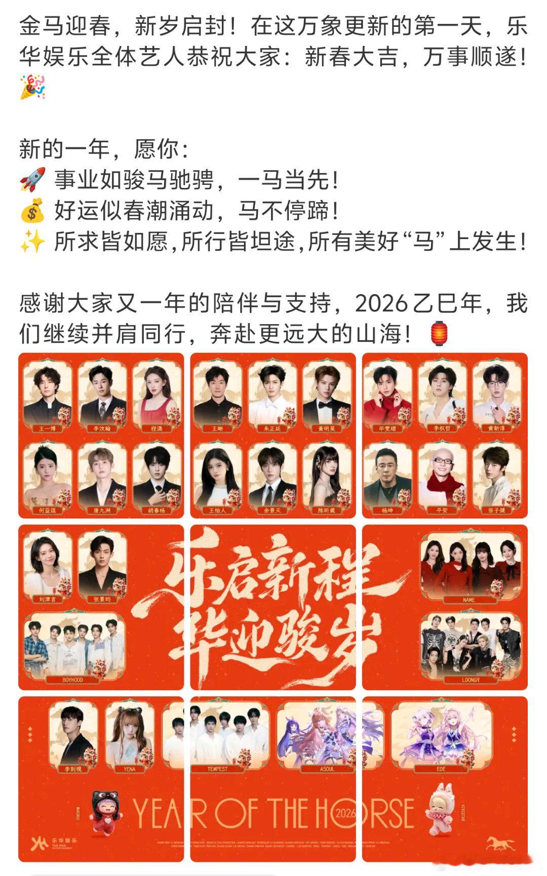 乐华的新春祝福没有吴宣仪、孟美岐了,王一博、程潇还在