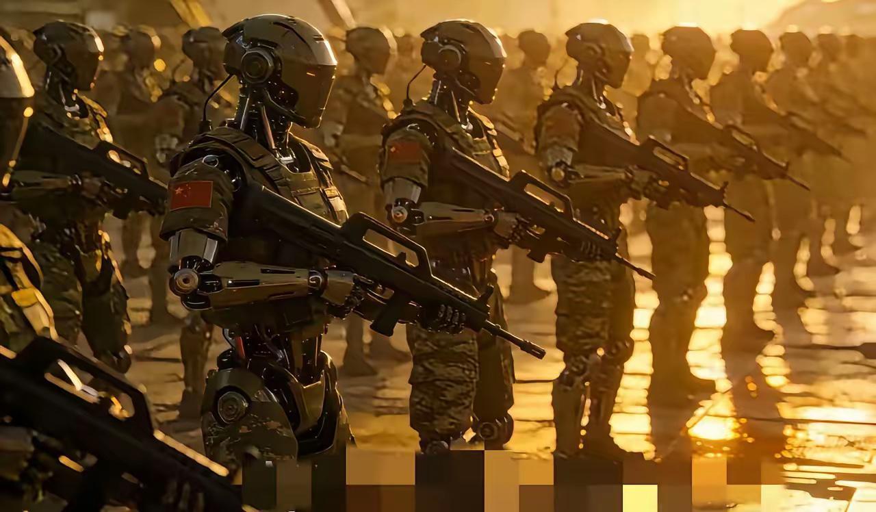 这跟头翻得、剑舞得,世界都安静了! 咱看春晚机器人是欢乐,外国人看是硬核实力,他们脑补的画面大概就是下图! 这哪是表演,是陀螺仪芯片技术,是微电机的动力技术,是机器人肢体材料的坚固和材料内部的分配技术,是算力的反应速度。 以前的机器人是站不稳的,是慢腾腾的。现在的机器人,是行云流水的,是跌到了会旱地拔葱的。 这要是用在军事上,就是矩阵化、打不倒的钢铁斗士。机器人配置机器狗,机器狼作战,再配置侦查鸟,侦查蚊,侦查鹰,还能有无人机保护作战,就问他们该如何破?! 日,印估计会尿失禁,尿不尽,美会肾上腺素高涨,反统,反中,谋独者都滚吧!到时别来个清算,成了个踩缝纫机的结果!