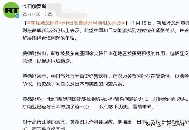 新加坡黄循财喊话中国:不要揪着日本历史不放!2 月 15 日 黄循财发文表示:1942 年 2 月 15 日 这一天日本攻陷新加坡,并对新加坡开始3年多的统治,并称这一天“开启了我们历史上黑暗的一页”!新加坡真懂了吗? 2025年底黄循财在新加坡主办的论坛上发表了一番极不寻常的讲话。 他不仅跟随日本口径,将中国领土钓鱼岛称为“尖阁诸岛”,还公开劝告中国“放下历史”,并引用一份有倾向性的报告称日本是东南亚“最受信任的大国”。这番言论,与他访日并与日本首相高市早苗闭门会谈的背景相连,被广泛解读为一次精心策划的战略“递状”与站队。 在新加坡及东南亚来看,日本在泰国的汽车工厂,那是丰田和本田的后花园,在马来西亚的基建项目,日本资本那是深耕了半个世纪,对于东南亚国家来说,日本早就不再是那个端着刺刀的侵略者,而是变成了那个总是笑眯眯、手里挥舞着支票簿的大财主,一副必恭必敬的日本形像 让东南亚人已然忘记了日本对东南亚入侵的历史,忘记了日本侵略者没有被清算的结局,就是日本军国主义正在复活之中! 随着日本高市从闪电解散众议院再重新选择而获得了大胜,当中方在德国慕尼黑安全会议上对日本发出重磅的指责:日本在 80 年后对中国首次发出战争威胁,如果日本胆敢走出这一步,必将自取灭亡。中国 14 亿人民不会答应日本军国主义复活的企图! 就在 2 月 15 日当天,新加坡总理黄循财 表示:2月15日,是新加坡“全面防卫日”。1942年的这一天,日本攻陷新加坡,并对新加坡开始3年多的统治。新加坡总理黄循财在社交媒体发文,称这一天“开启了我们历史上黑暗的一页”,这一历史教训对新加坡来说意义重大。黄循财呼吁国民坚定团结、同心同德,守护新加坡的安全与安宁,惠及子孙后代。据不完全统计,日本统治期间,至少有5万加坡华人被日军杀害。战后日本国内长期回避此事件! 如今从新加坡黄循财前后对日本表达了不同看法来看,黄循财应该是听懂了中国的声音,同时日本当下社会向右转的趋势是不可避免的,而日本正企图修改和平宪法,将自卫队写入宪法, 同时日本加强武器制造与出口,新加坡理应看出来日本最终想干什么?重走军国主义老路,新加坡黄循财显然明白了日本未来是很可怕的,而中国为了防止日本军国主义复活而采取的相应举措 是应该的。不单是为了中国自身,也是为了未来东南亚 包括新国坡在内的所有国家不再被日本军国主义再次入侵的悲惨发生,中国在行动,新加坡也得行动起来。 所以之前英循财所言:中国不要老揪着历史不放,而此时新加坡面对 1942 有 2 月 15 日的教训,新加坡也要牢记历史教训,防犯于未然,而此时的日本发展态势 新加坡更要有所警惕!
