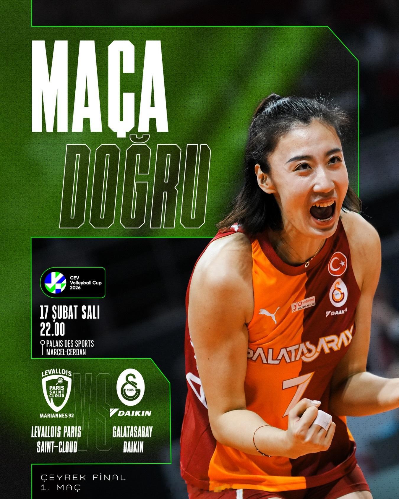 北京时间今天晚上(明天凌晨)03:00,2026女排欧联杯 四分之一决赛首回合,王媛媛 效力的土耳其加拉塔萨雷将在客场挑战法国巴黎勒瓦卢瓦。