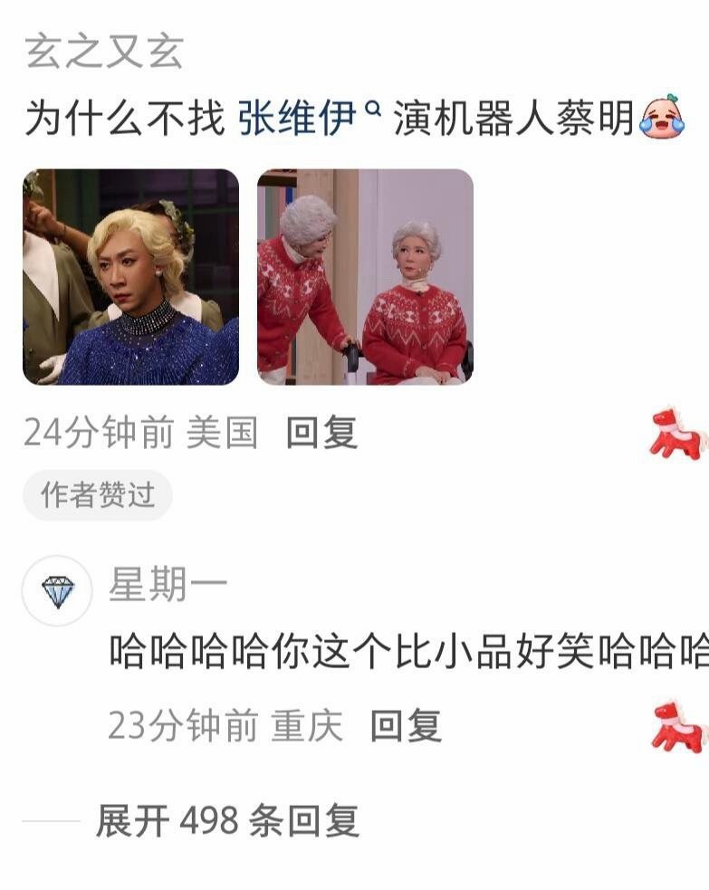怎么不找张维伊演机器人蔡明笑不活了!网友:怎么不找张维伊演机器人蔡明?