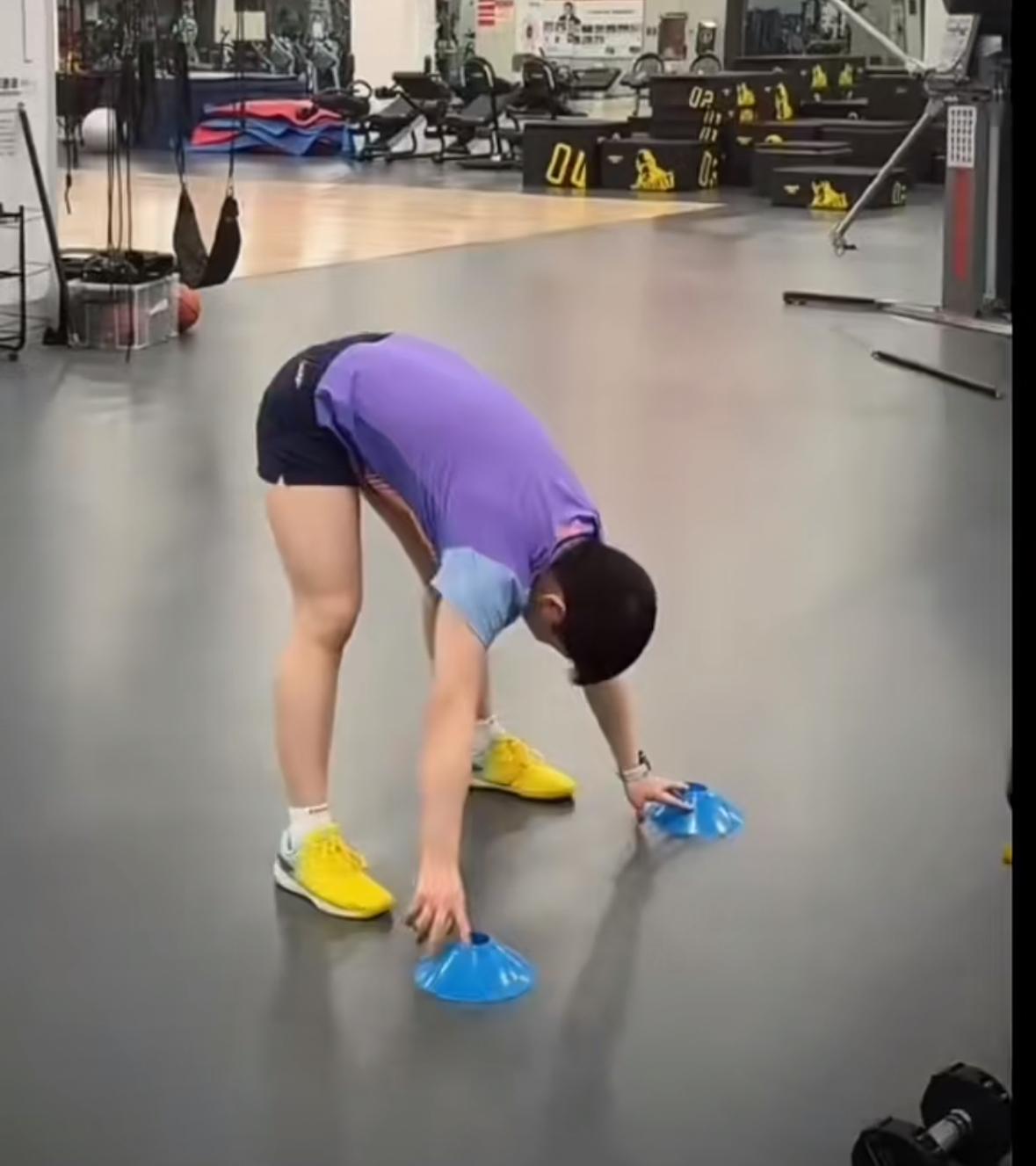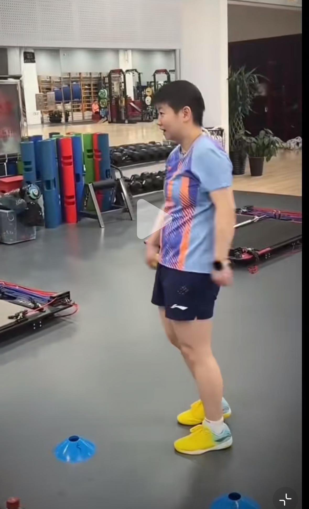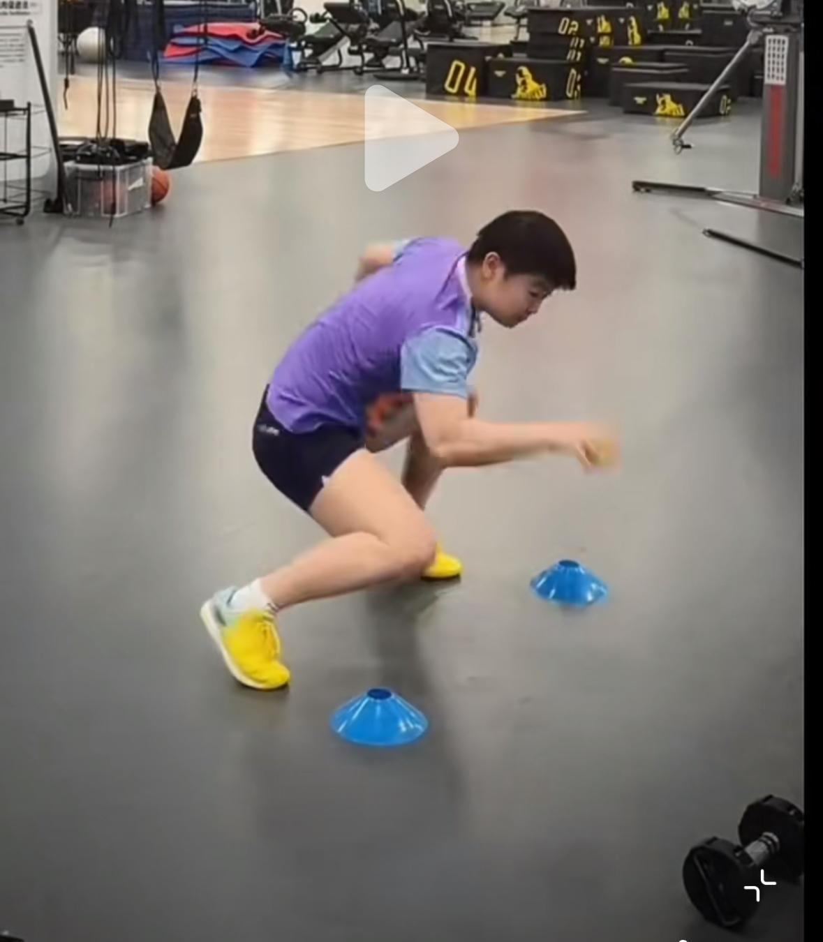 孙颖莎大年初一体能训练中——紫色莎莎最后那套小连招真帅呀! 国乒队员大年初一已经