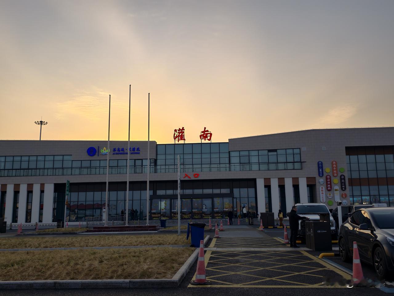 正月初一,江苏的服务区节日氛围感也是满满的。 进入苏北已有江南水乡之感,夕阳余晖染红宁静的水面,灌南农村恬静的田园令人倍感温馨。 灌南服务区也营造着浓浓的节日氛围。