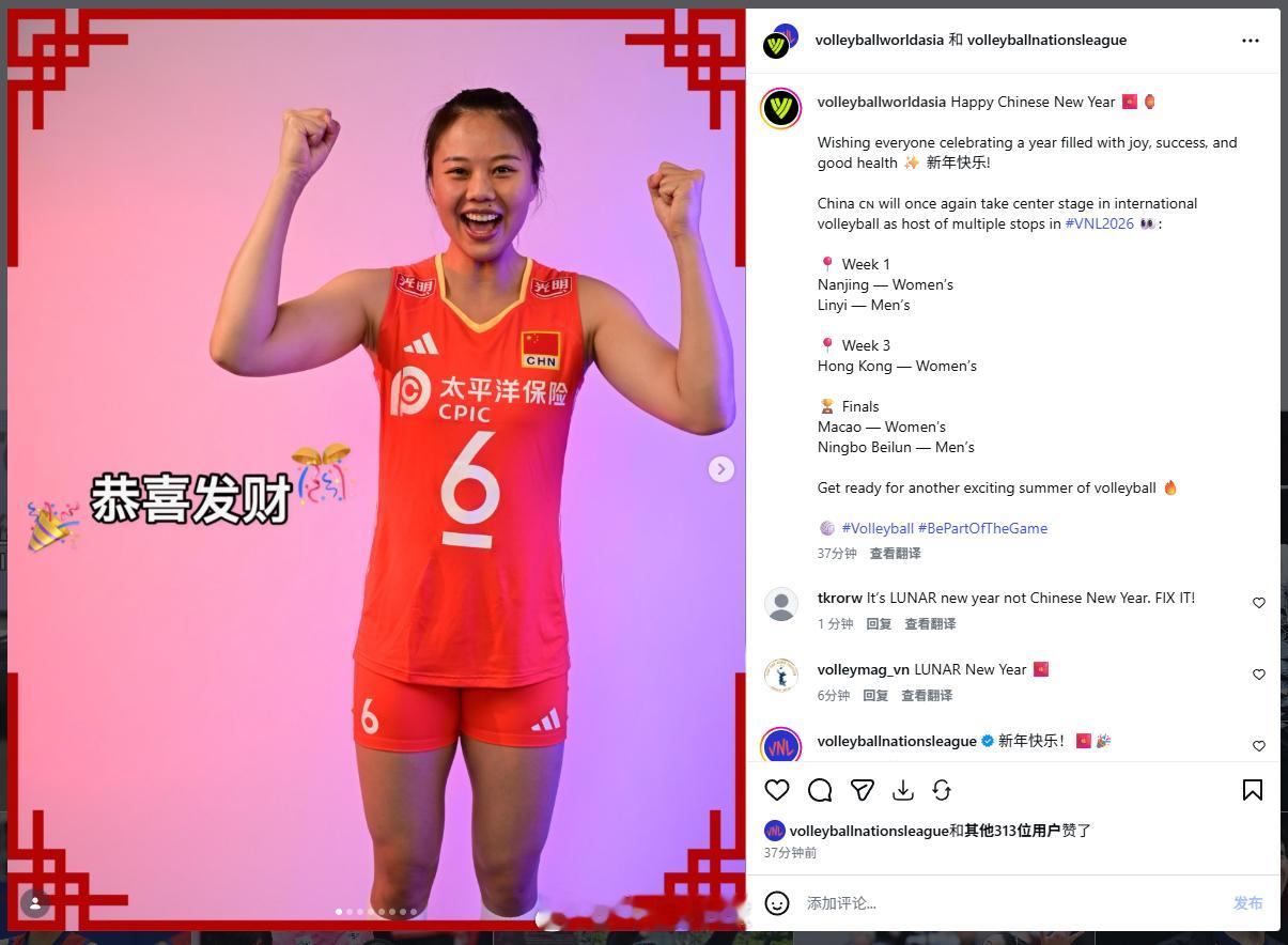 祝愿所有庆祝中国年的人们在新的一年里充满欢乐、成功和健康!✨ 新年快乐!中国🇨🇳将再次成为国际排球舞台的焦点,承办VNL2026 的多站比赛👀: