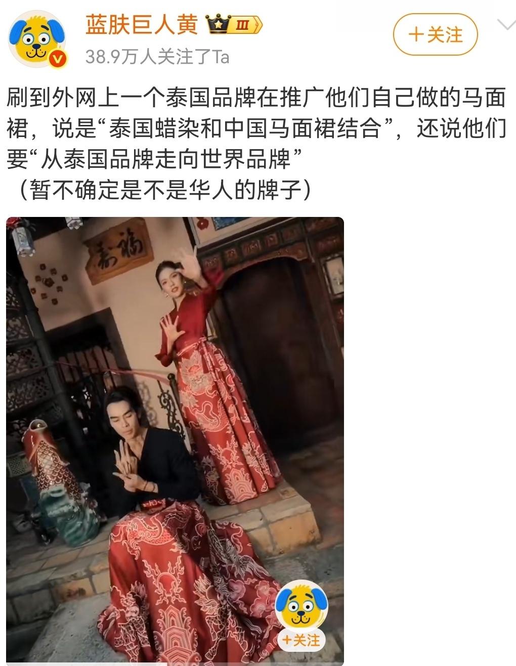 汉服是东亚和东南亚国家人民的财富。 (如图所示)汉服有悠久的发展历史,辉煌的历史地位,是世界服装史最灿烂的组成部分之一,其中日本和服源自唐朝,韩国服装源自明朝,这样的例子有很多。如今,泰国公司把汉服马面裙与泰国蜡染相结合,自信能从泰国品牌走向世界品牌。